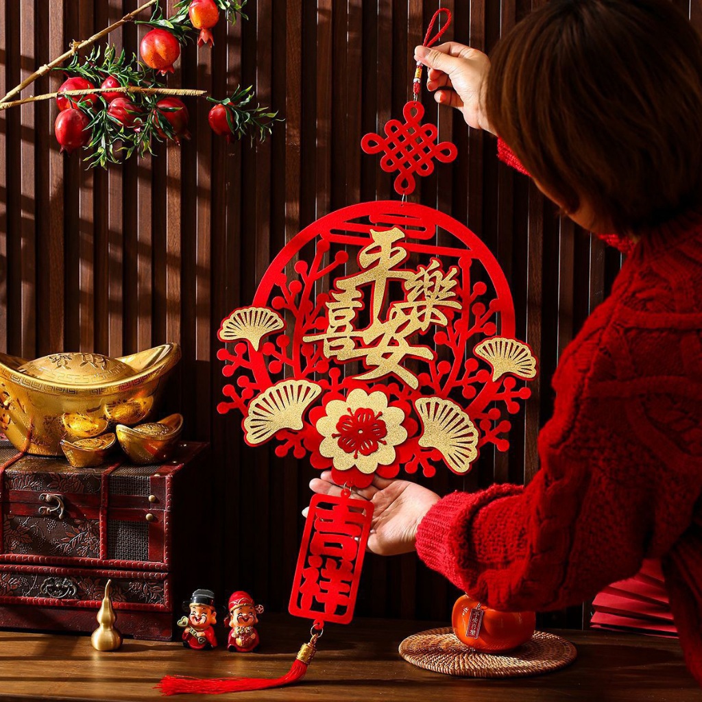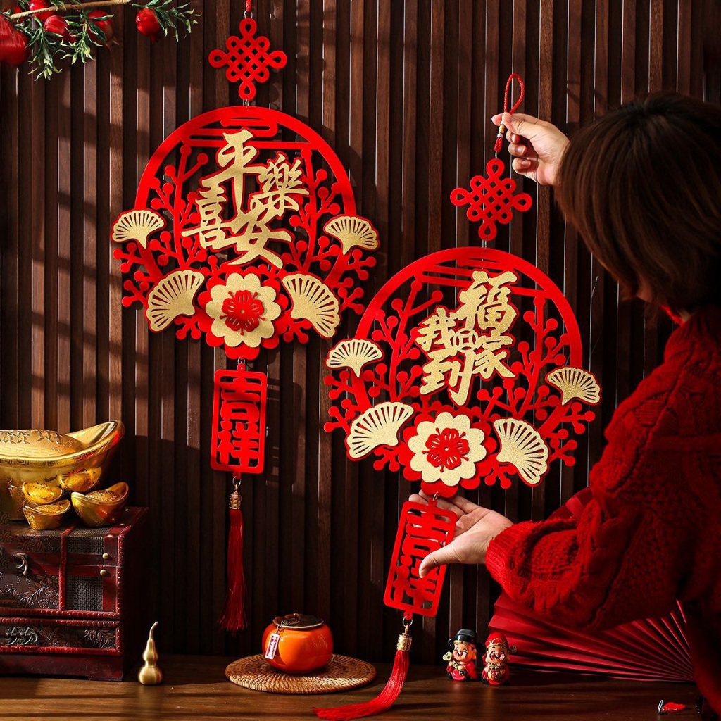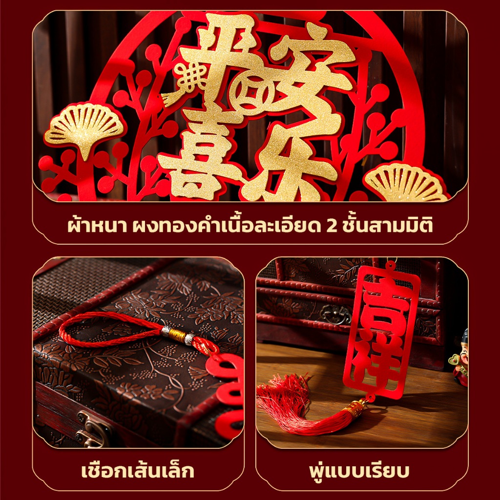 ของตกแต่งตรุษจีน ป้ายมงคล ปมเชือกจีนโบราณ เสริมสิริมงคล ความหมายดี อักษรภาษาจีนสีทอง เทศกาลปีใหม่จีน