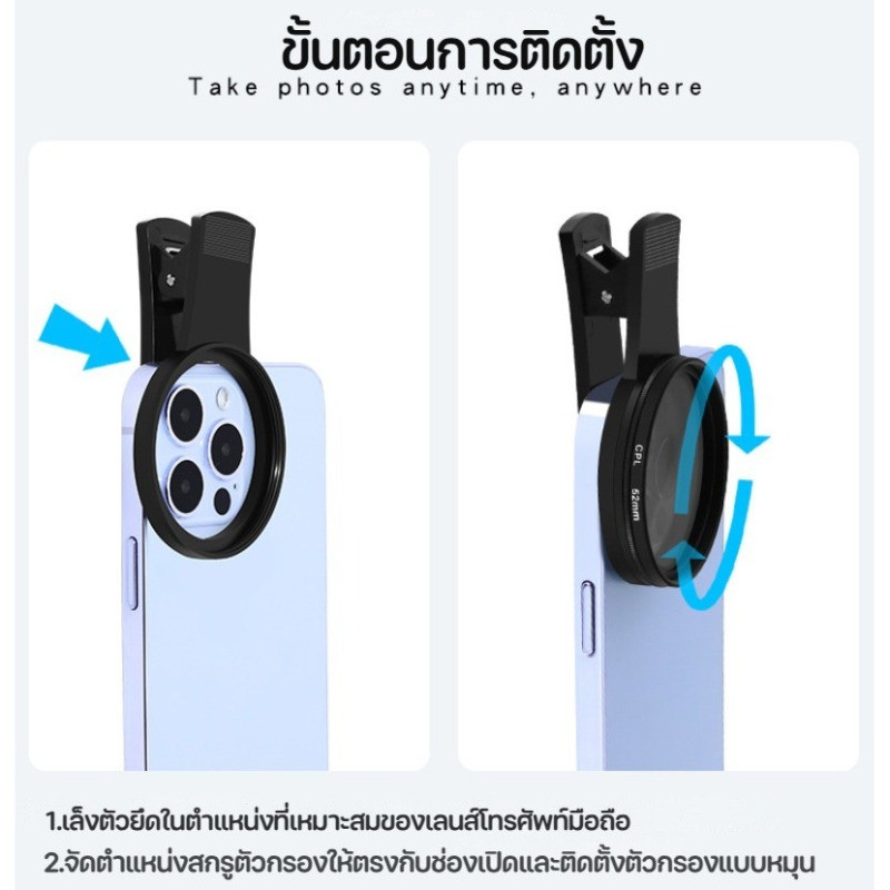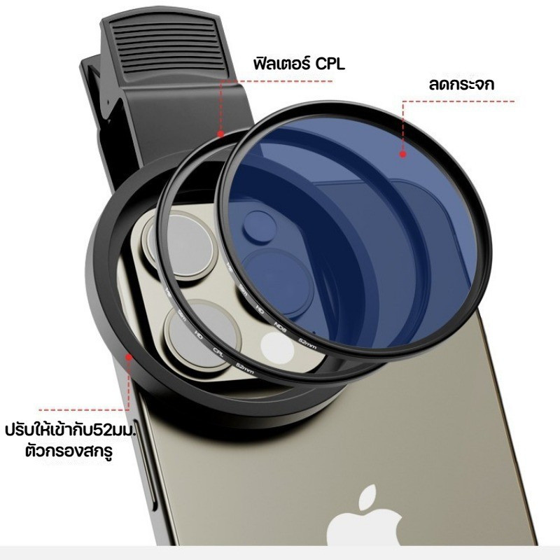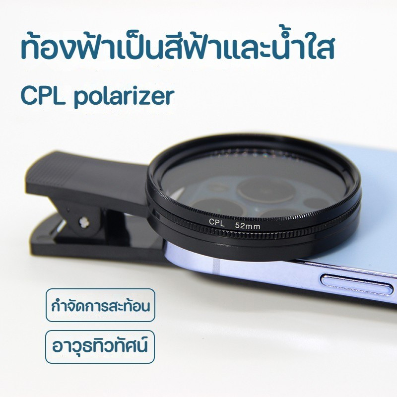 เลนส์ CPL มือถือ Lens Filter 52mm แบบมืออาชีพ สําหรับลดแสงสะท้อน เพิ่มความอิ่มตัวของสีและความคมชัด