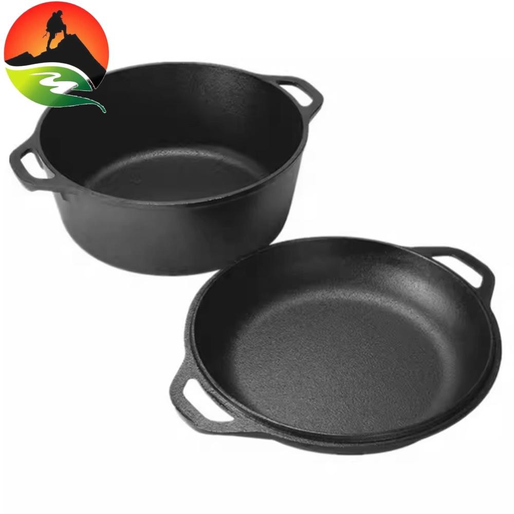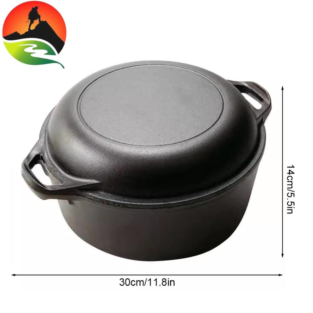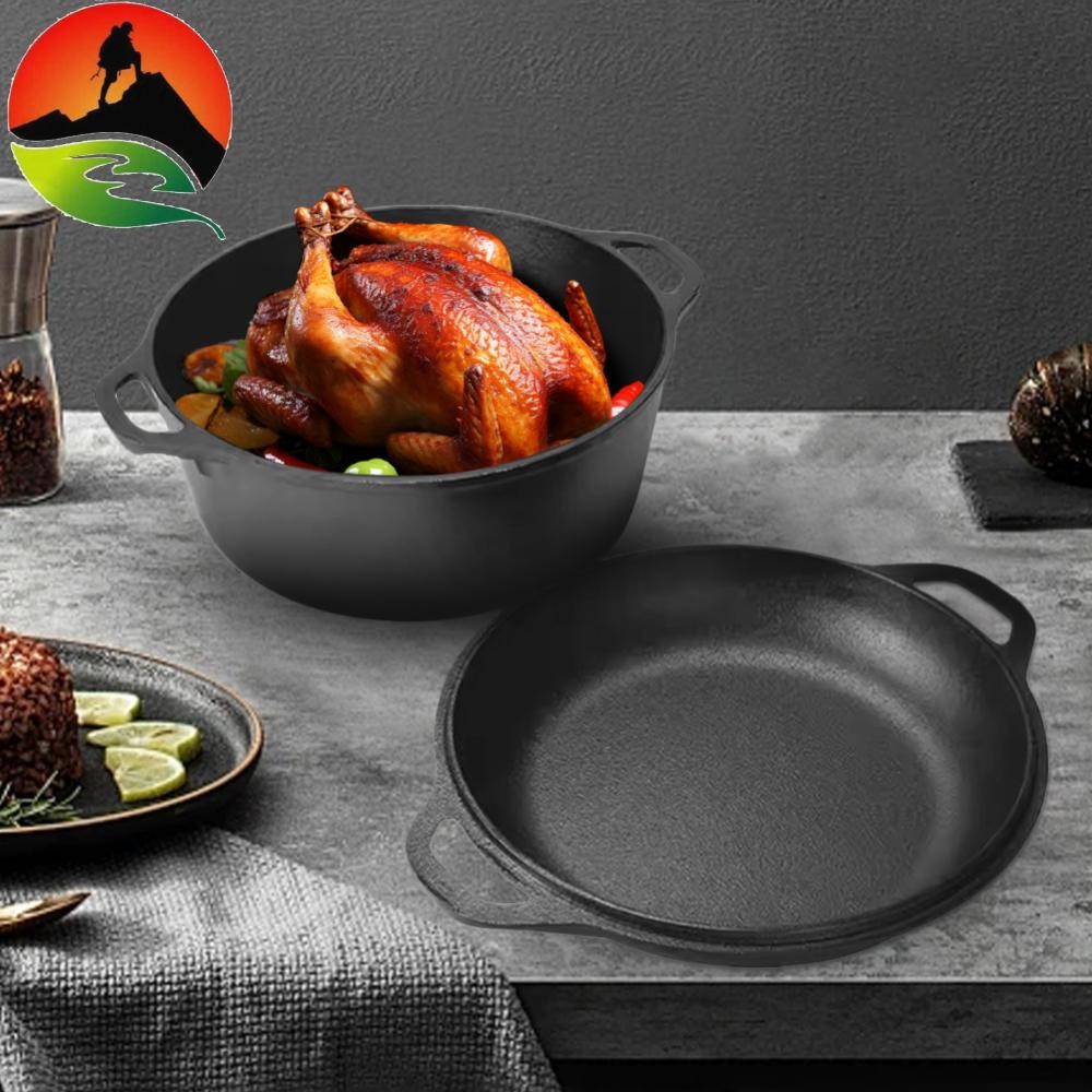 2 in 1 เหล็กหล่อเตาอบดัตช์พร้อมฝาปิด Skillet เครื่องครัวชุดกระทะสําหรับขนมปังทอดเบเกอรี่ Camping BBQ [joyfeellest.th]