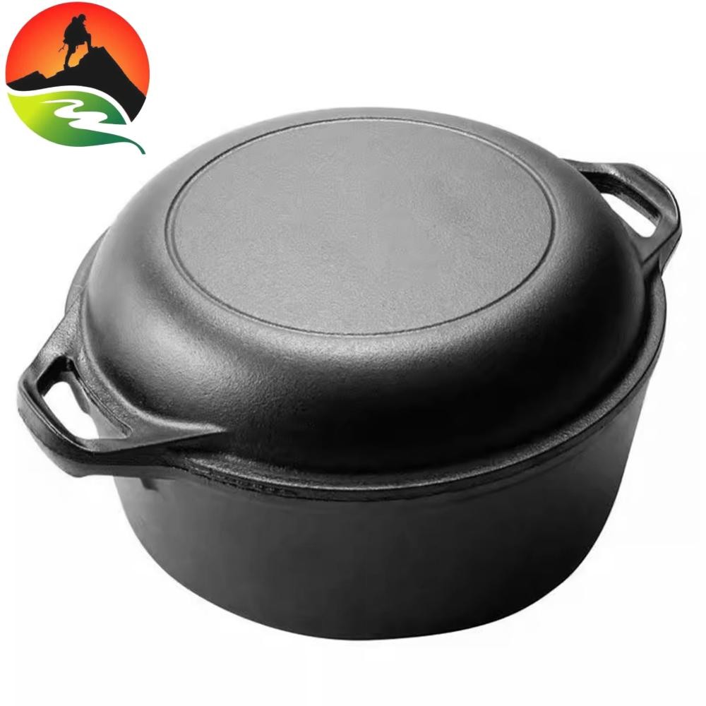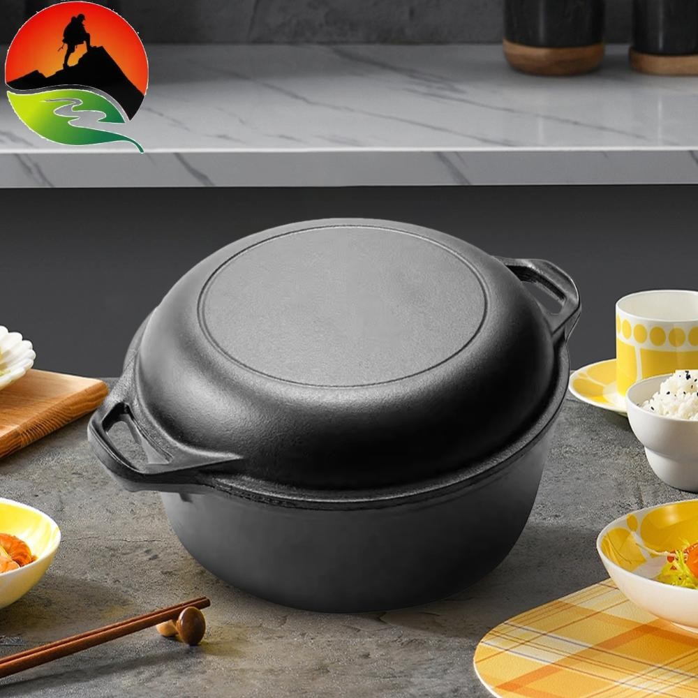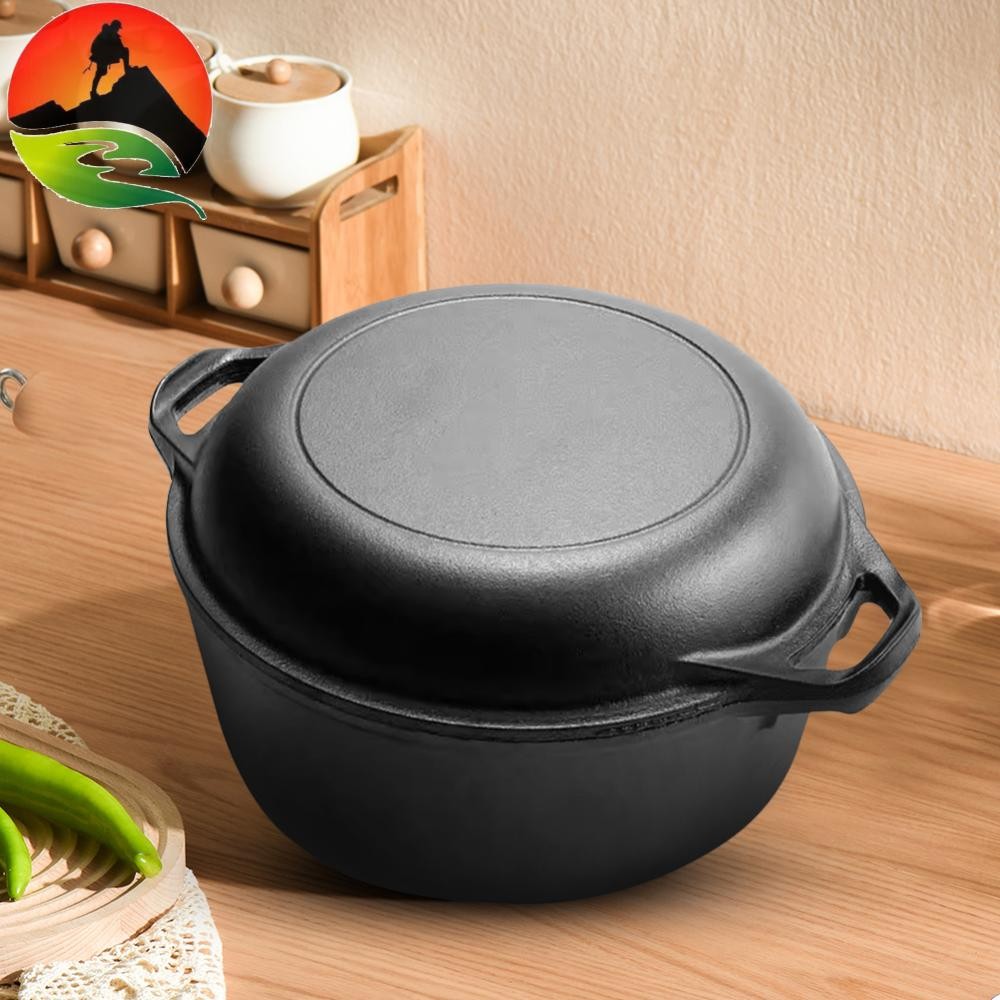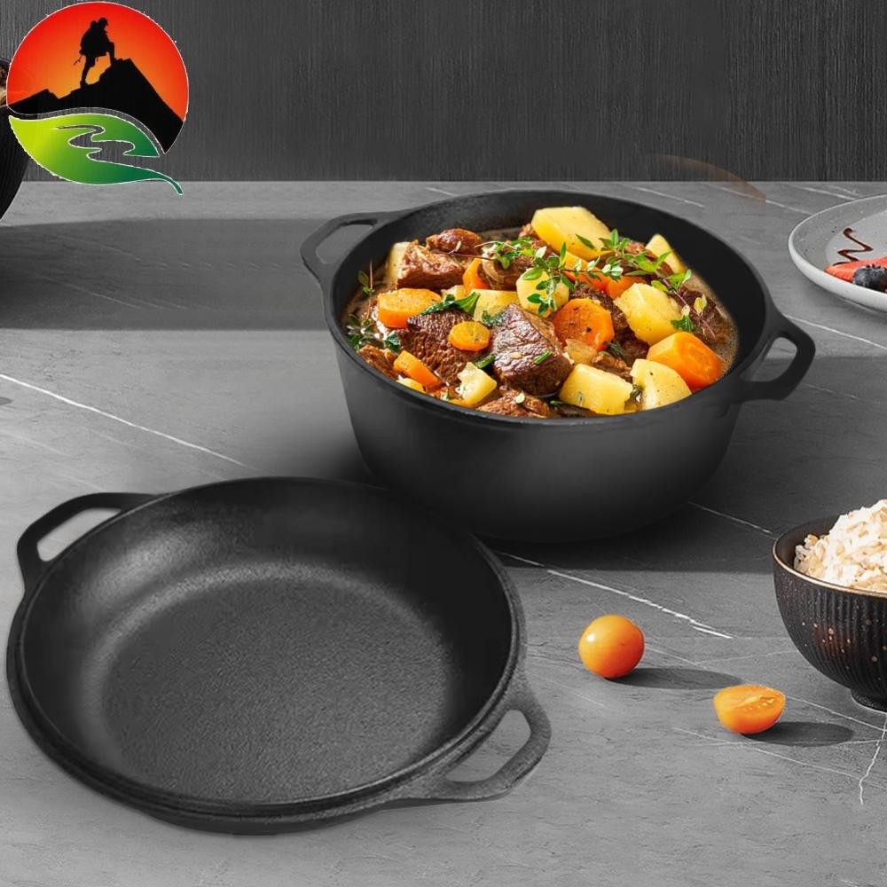 2 in 1 เหล็กหล่อเตาอบดัตช์พร้อมฝาปิด Skillet เครื่องครัวชุดกระทะสําหรับขนมปังทอดเบเกอรี่ Camping BBQ [joyfeellest.th]