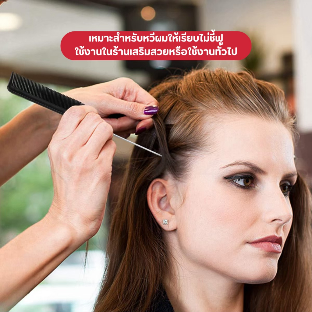 หวีหางแหลม หวีแบ่งผม หวีปลายแหลม จัดแต่งทรงผม ป้องกันไฟฟ้าสถิตย์ สีดำ