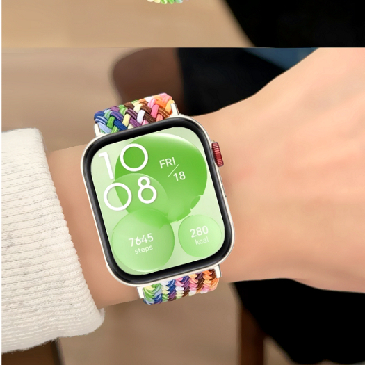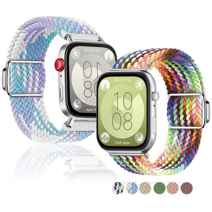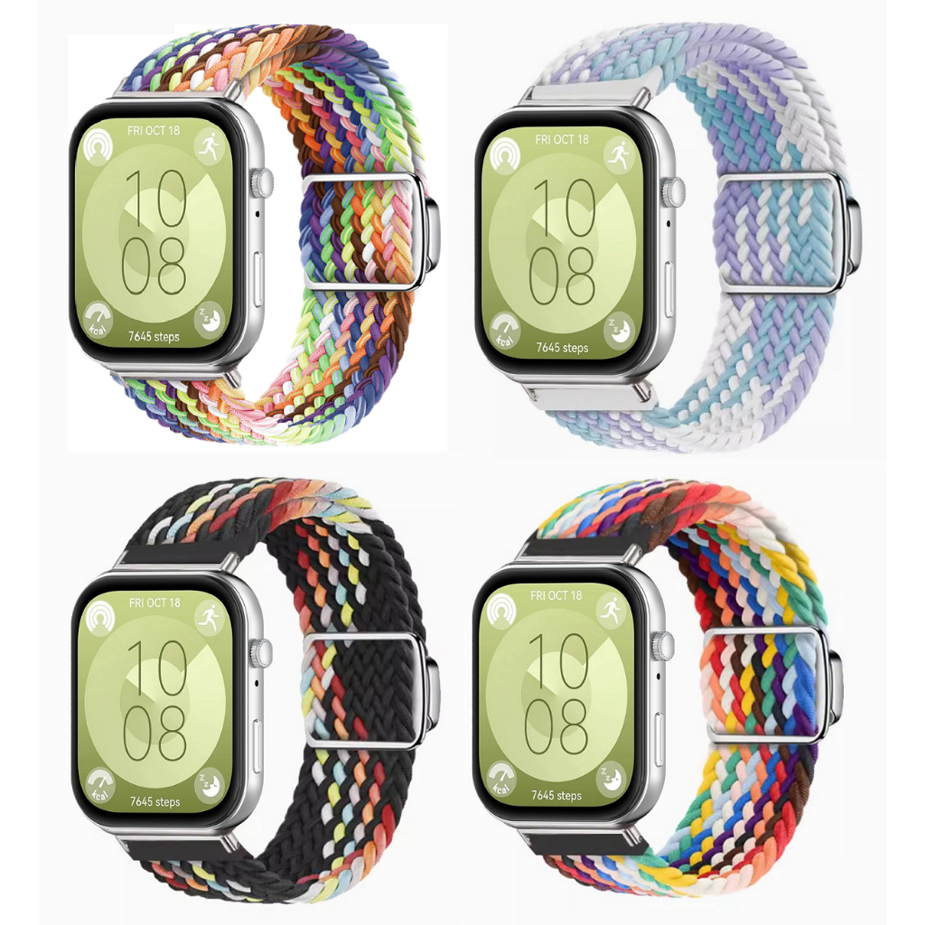 Rianbow Color สาย Huawei watch fit 3 Strap Soft Huawei watch Fit 4 สาย Nylon Huawei watch fit 3 สาย Replacement huawei fit 3 สาย Wristband Magnetic สาย Huawei watch Fit 4 huawei watch fit 3 สาย High Quality Braided สาย Huawei Watch fit 2 Strap