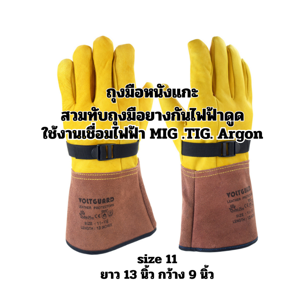 ถุงมือกันไฟฟ้าดูดClass 1 แรงดันสูงสุด 3,000Vและ21,750Vมาตรฐาน SIZE 11และถุงมือหนังแกะสำหรับสวมทับเพื่อความปลอดภัยสูงสุ