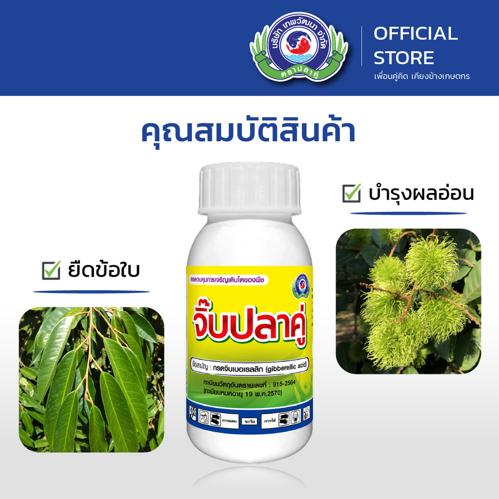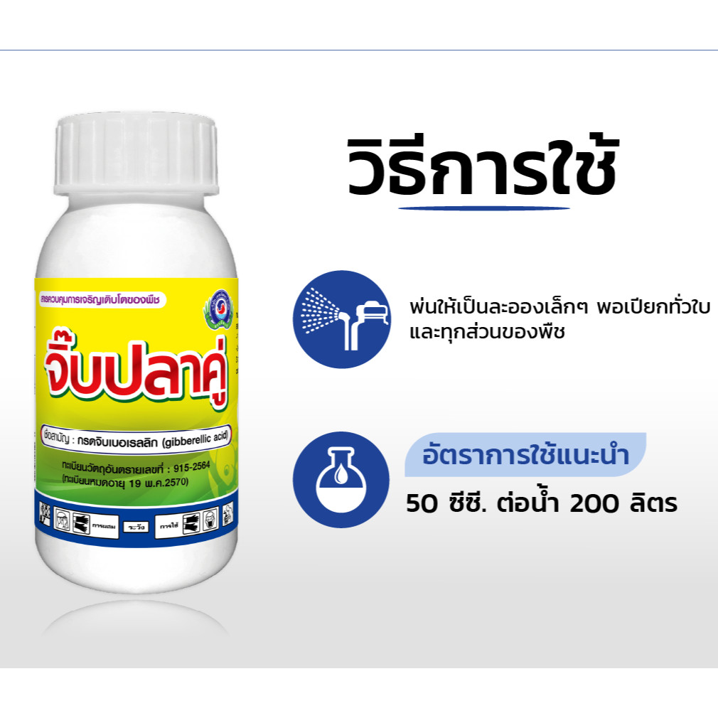 จิ๊บ ปลาคู่ กรดจิบเบอเรลลิก (gibberellic acid)4% EC ขนาด 100 ซีซี. ฮอร์โมนพืช สารควบคุมการเติบโต #เทพวัฒนา ยืดข้อดอก