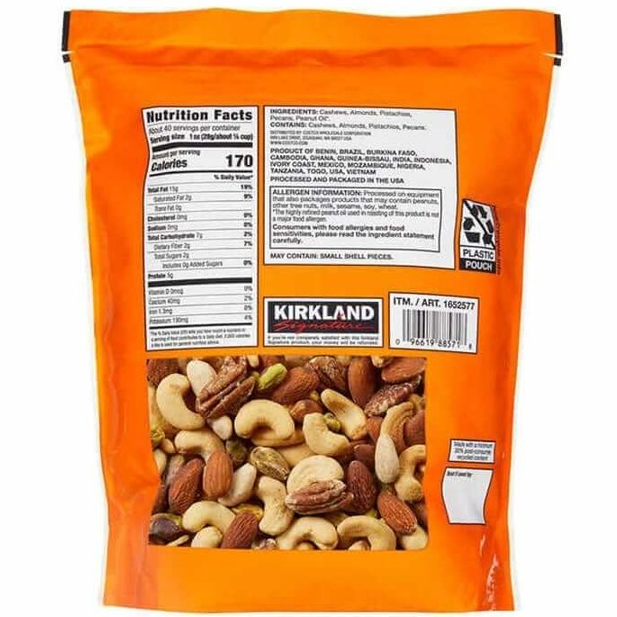 Kirkland Signature Extra Fancy Unsalted Mixed Nuts เคริกแลนด์ มิกซ์ นัท ถั่วผสม ไม่ใส่เกลือ 1.13kg.