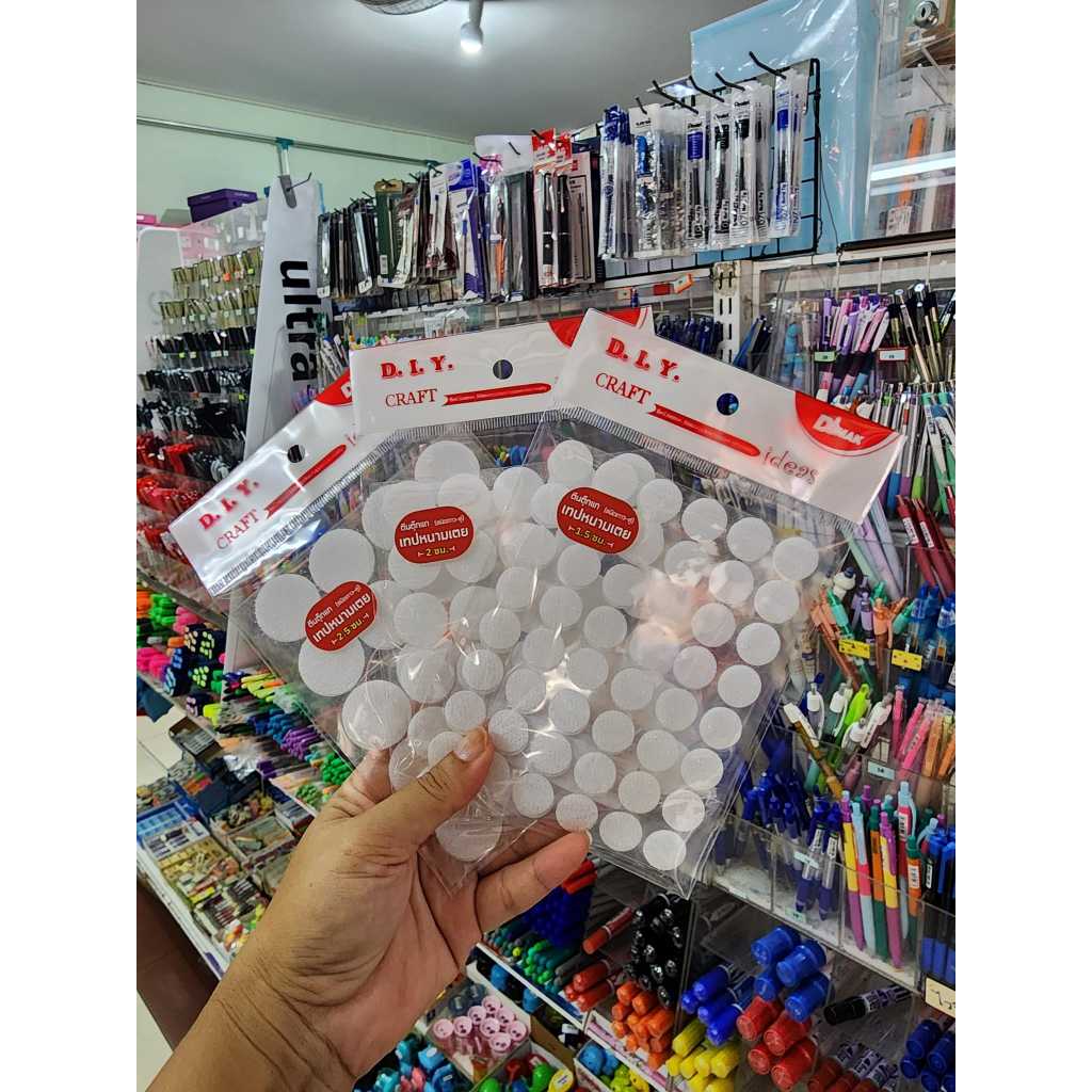 เวลโครเทป หรือ เทปตีนตุ๊กแก สีขาว สีดำ แบบมีกาวตัดเป็นวงกลมสำเร็จแบบมีกาว 1 คู่ ประกอบไปด้วยด้านหนาม และด้านขน ใช้สำหรับติดกระดาษ พลาสติก หนังเทียม หนัง เสื้อผ้า กระเป๋า สื่อการเรียน การสอน และอื่น ๆ วิธีใช้ ลอกเวลโครออกมาจากกระดาษรอง แล้วนำไปติดก