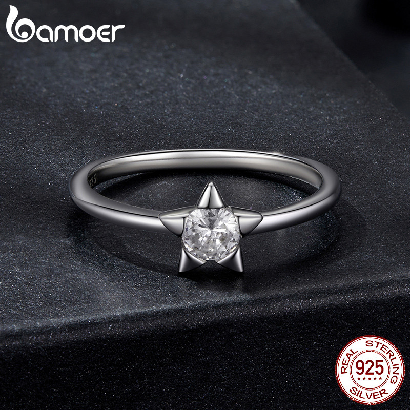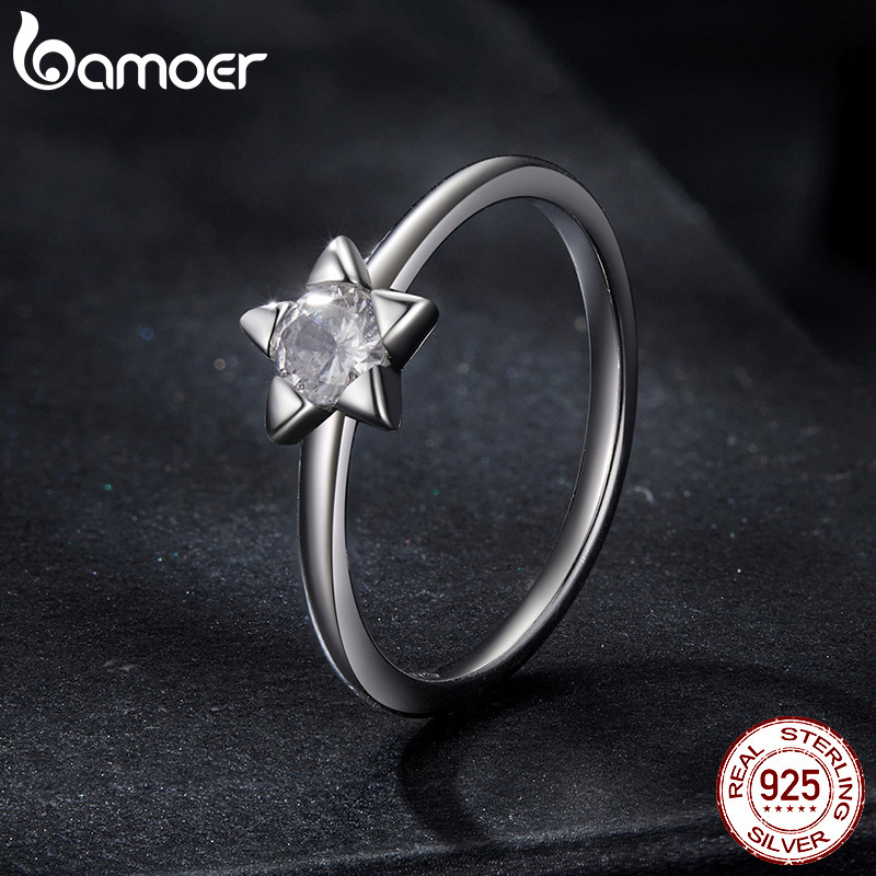 Bamoer 925 Sterling Sliver Ring Star Moissanite ของขวัญหรูหราสําหรับผู้หญิง MSR064