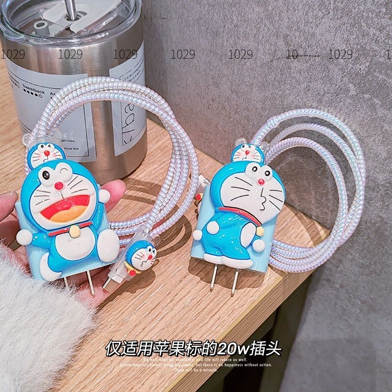 การ์ตูนน่ารักโดราเอมอนซิลิโคนสายชาร์จตัวป้องกันเครื่องชาร์จสําหรับ iPhone 18w/20w โทรศัพท์มือถือ