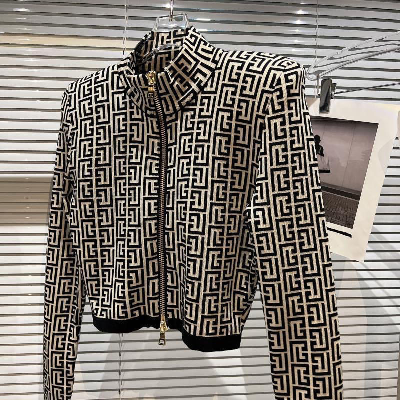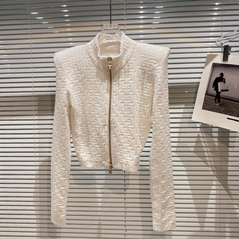 2025 ฤดูใบไม้ร่วงใหม่สไตล์ผู้หญิงสีเข้มซิปด้านบนสุภาพสตรีเสื้อคาร์ดิแกนถักสามมิติเสื้อตัวเล็ก [พร้อมสต็อก]