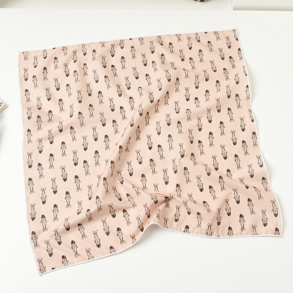 วรรณกรรมผ้าฝ้ายแท้ผ้าพันคอสี่เหลี่ยมเล็กแฟชั่นตกแต่งดอกไม้ผ้าพันคอ