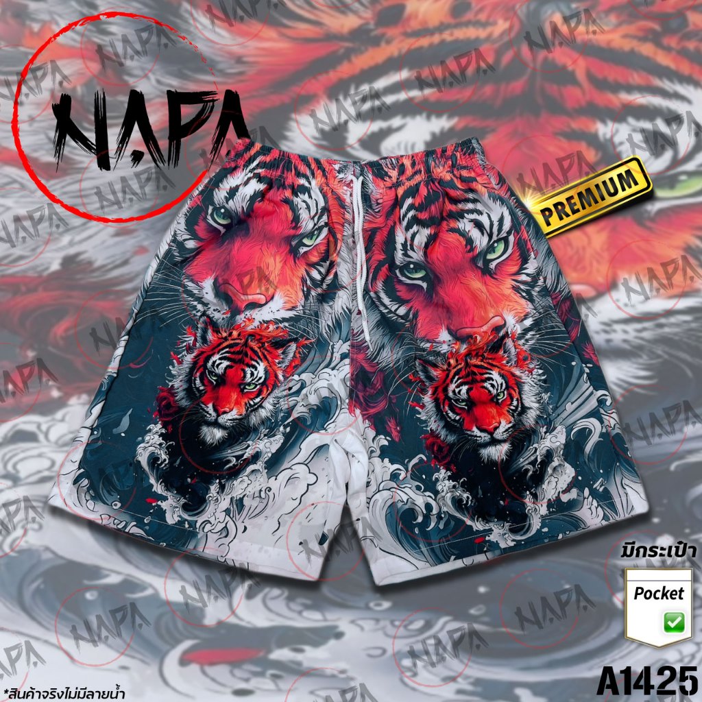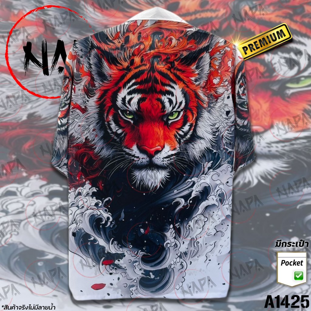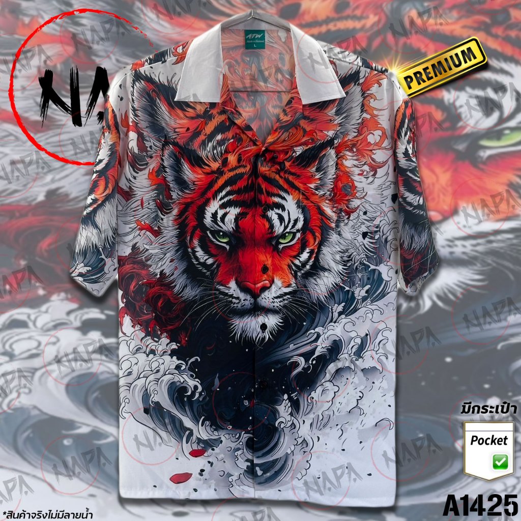เสื้อฮาวาย หน้าเสือคลื่นเทา A1425 ผ้าไหมอิตาลีแท้