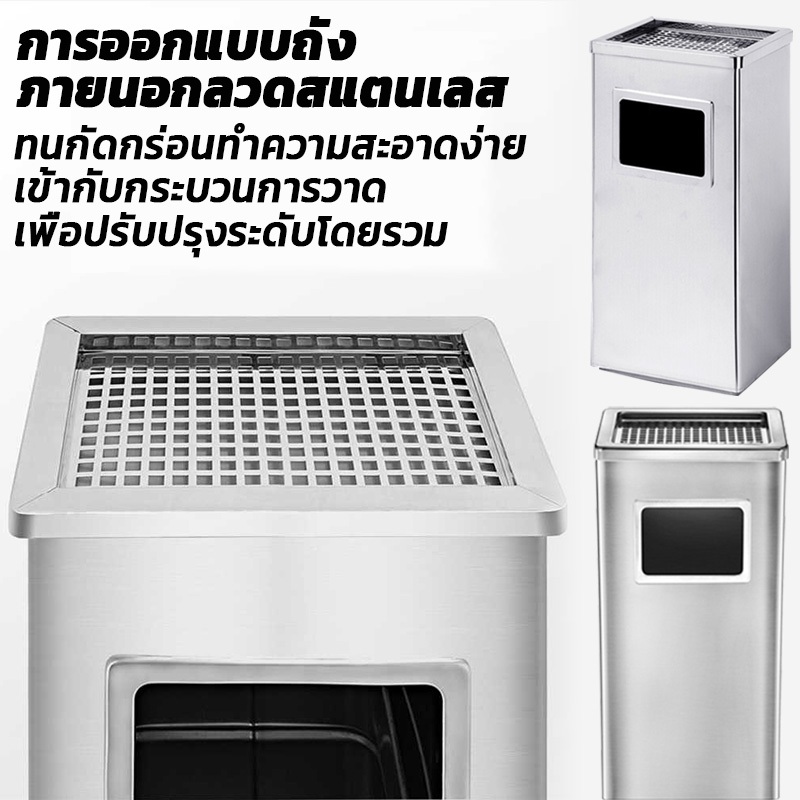 Velostride ถังขยะ ถังขยะสแตนเลส พร้อมที่เขี่ยบุหรี่ ถังขยะสเตนเลสสี่เหลี่ยม ถังขยะใหญ่ แข็งแรงทนทาน ถังในตัว
