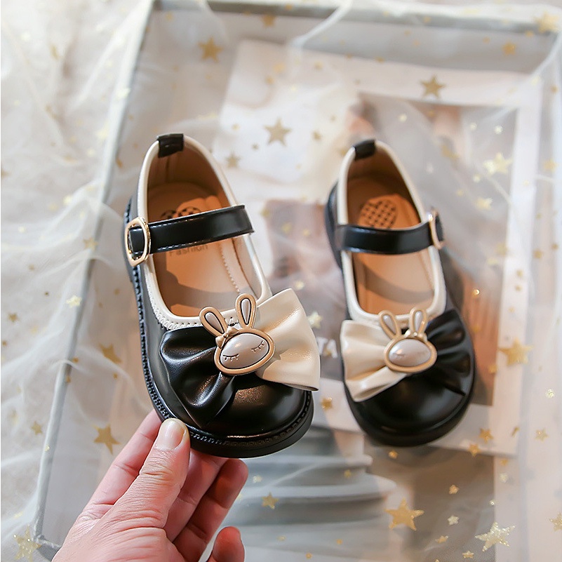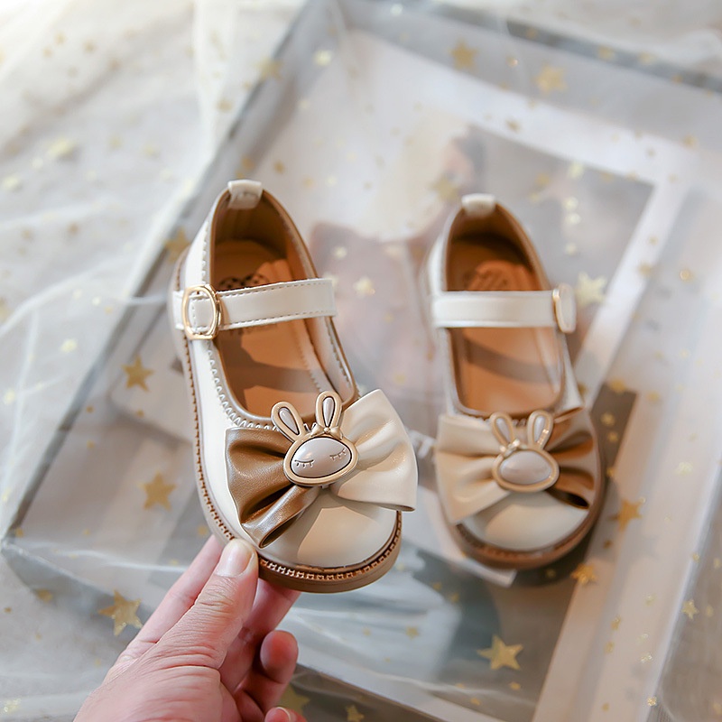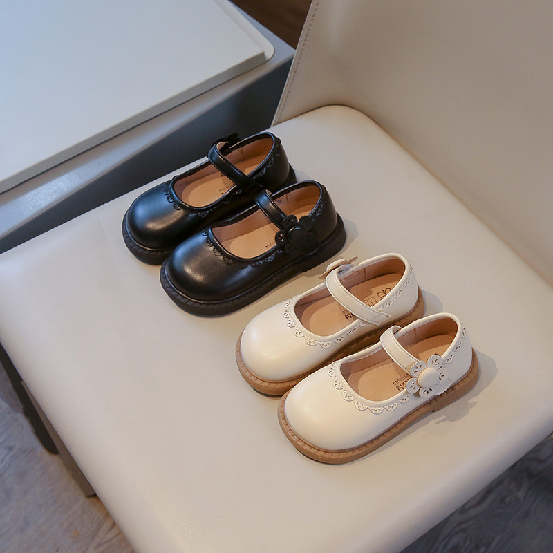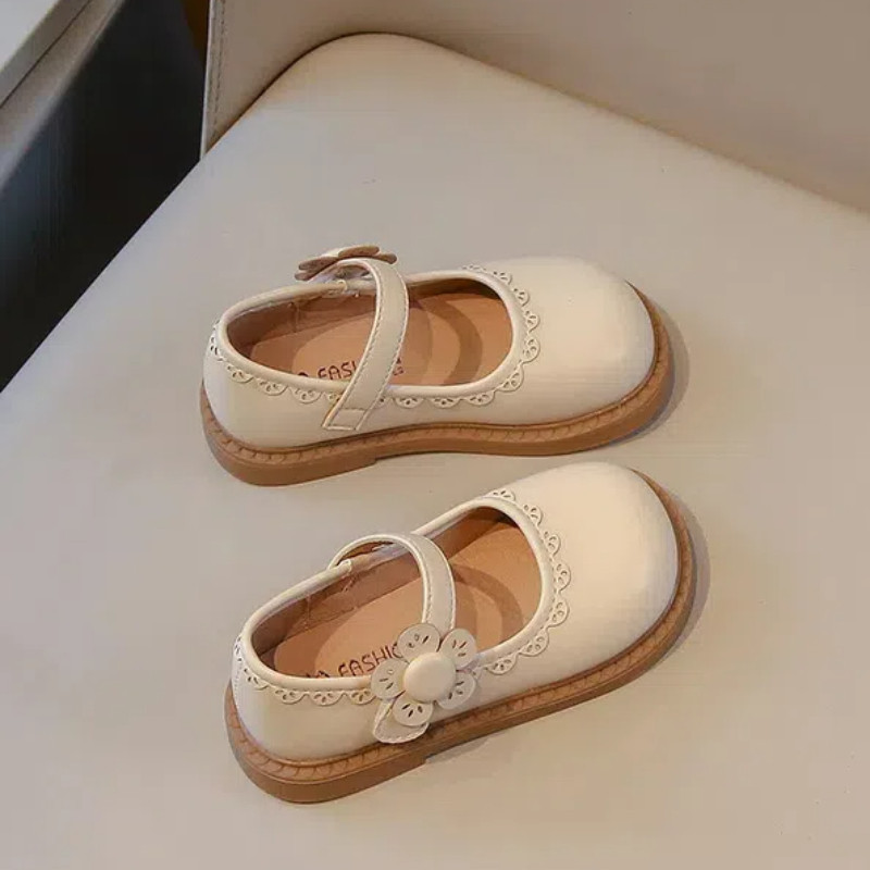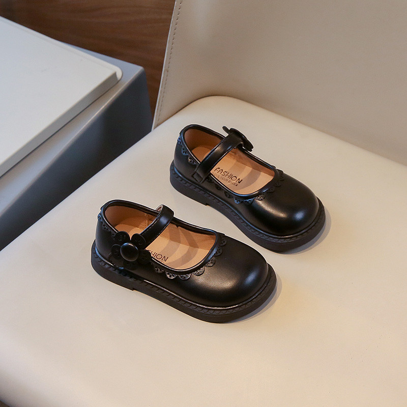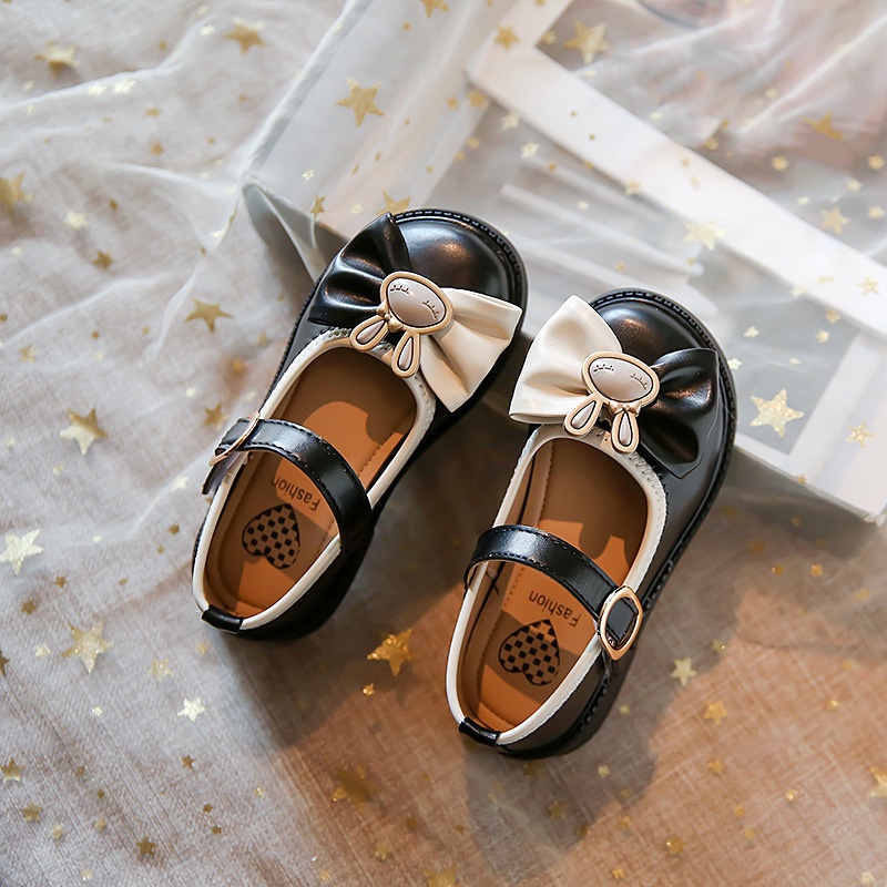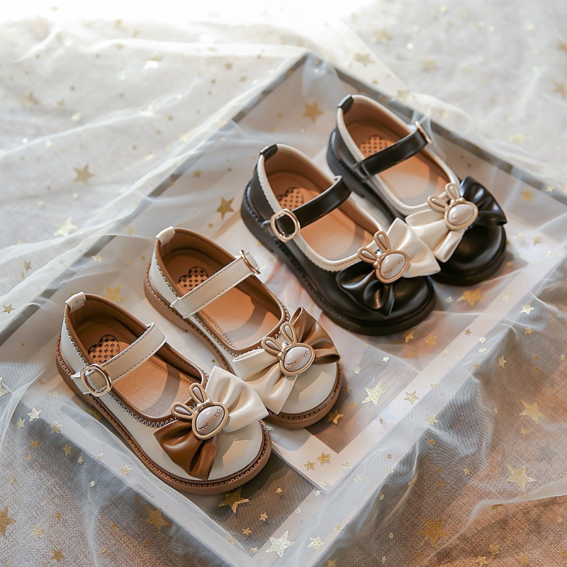รองเท้าเจ้าหญิงเด็กกับโบว์สีชมพูสาวแฟชั่นรองเท้าหนังเล็กๆน้อยๆสําหรับงานแต่งงาน2024เด็กใหม่รองเท้าเต้นรํานุ่มแต่เพียง