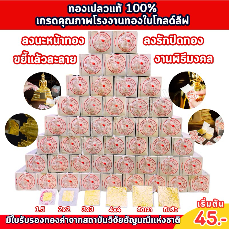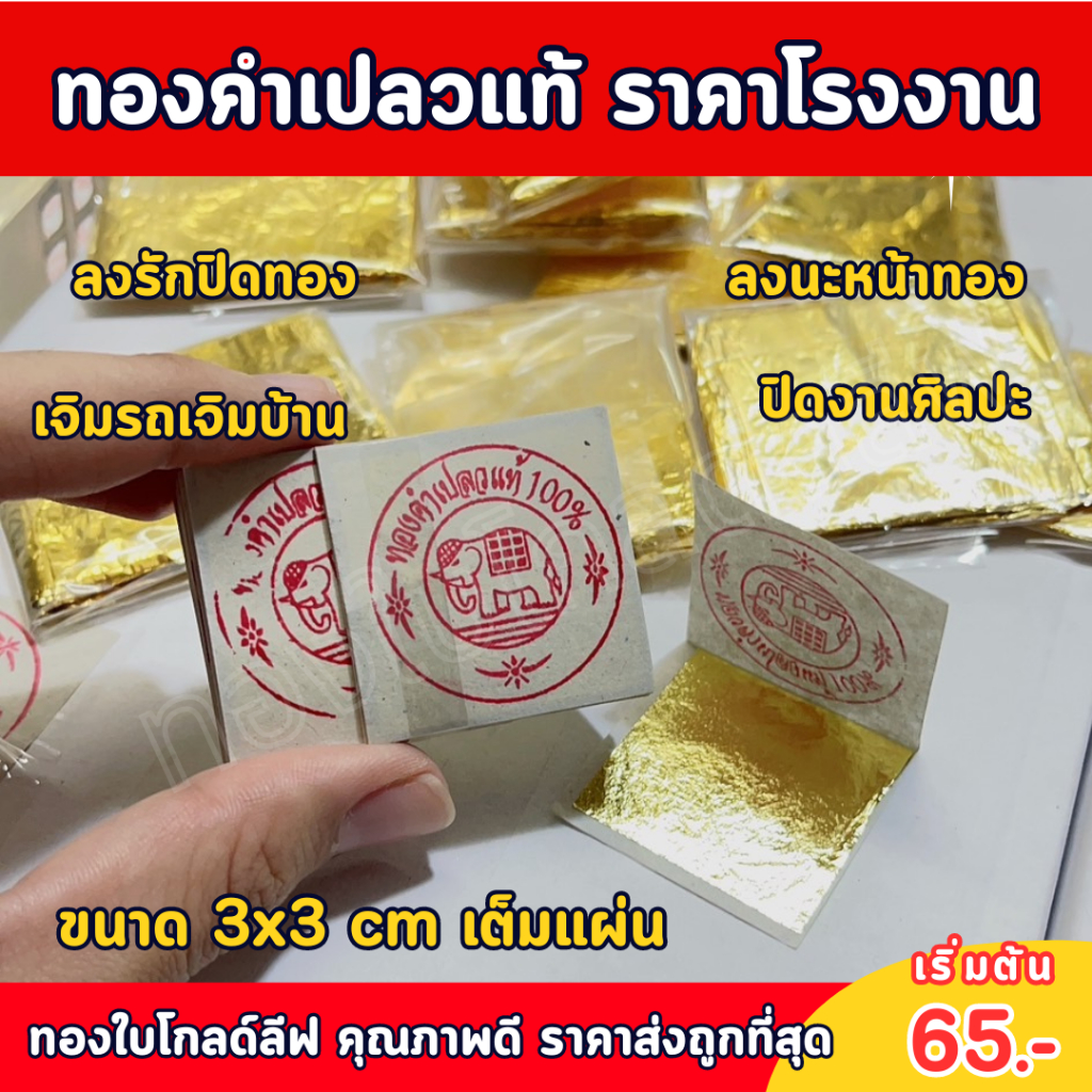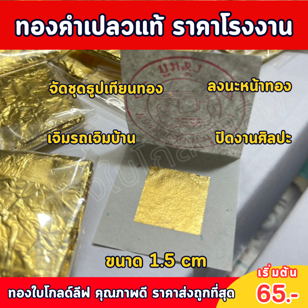 ทองคำเปลวแท้ ราคาโรงงาน ทุกเกรด ทุกขนาด ขายปลีก-ส่ง ราคาถูกที่สุด สำหรับลงนะหน้าทอง เจิมบ้าน เจิมรถ ปิดพระพุทธรูป ปิดวัตถุมงคล ปิดงานศิลปะ สปาหน้า ตกแต่งหน้าขนม เกรดทานได้ ปลอด