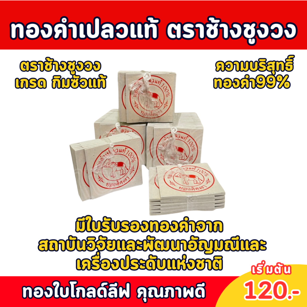 ทองคำเปลวแท้ ราคาโรงงานโดยตรง แพ็คละ 50 แผ่น เกรดกิมซัวแท้ มีใบรับรองทองคำ ทอง24K Premium ทองบริสุทธิ์