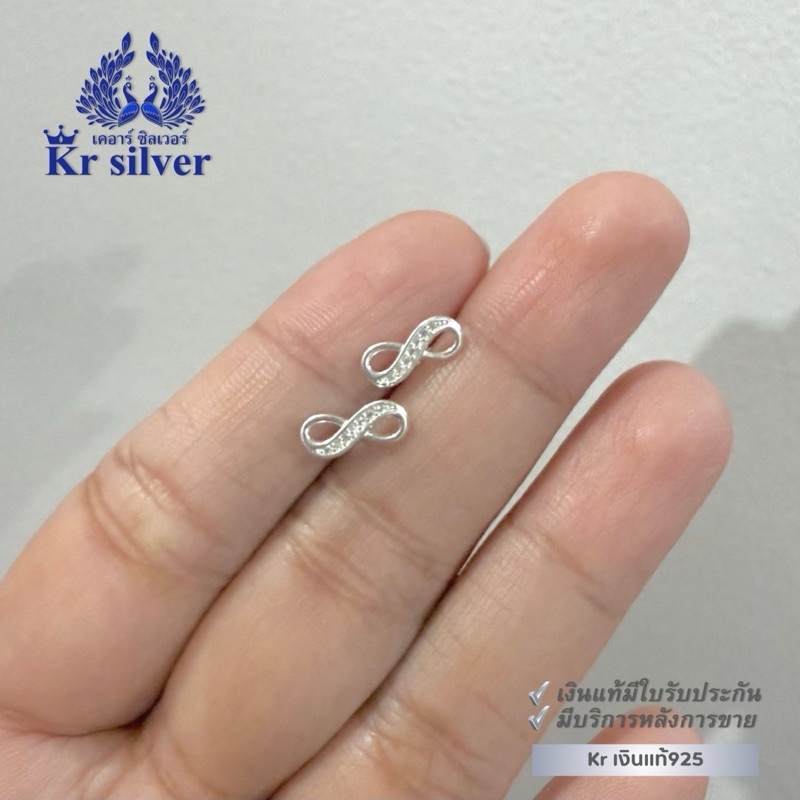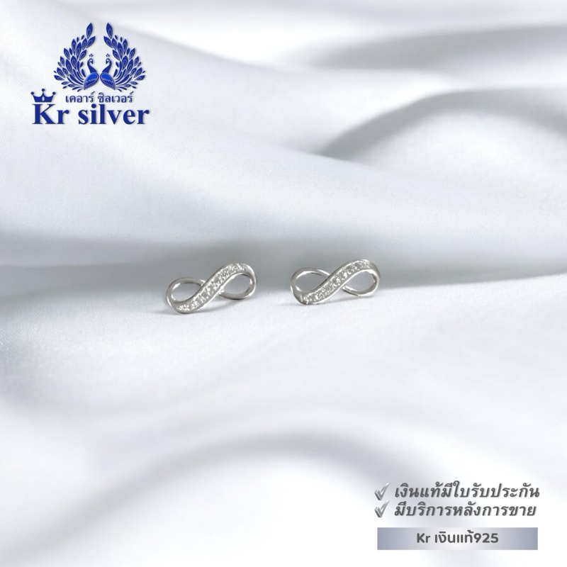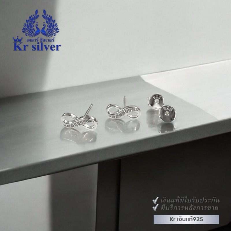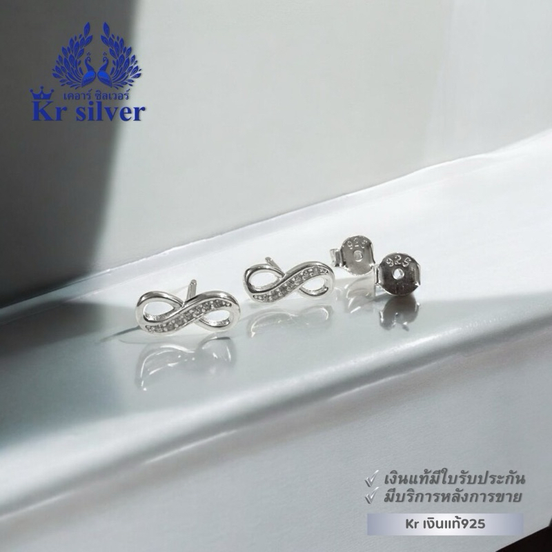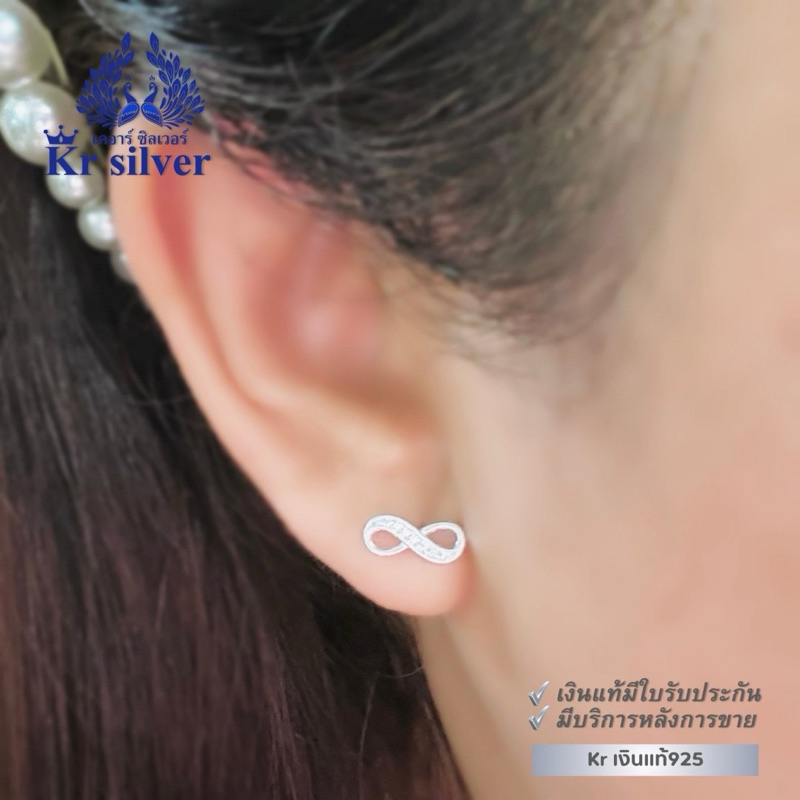 Kr silver เงินแท้มีใบรับประกัน ต่างหูเงินแท้ infinity สัญลักษณ์ของความรักที่มั่นคง ความร่ำรวย และโชคดี | ES1D0002