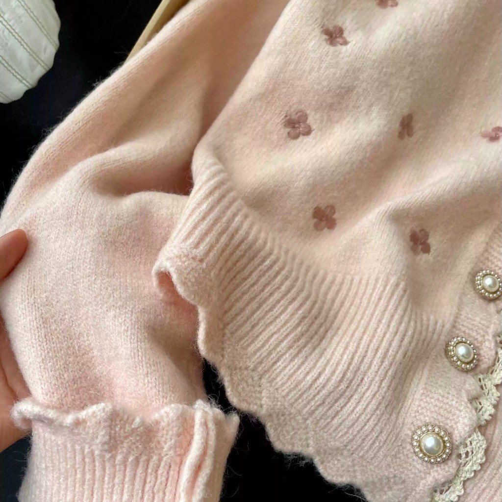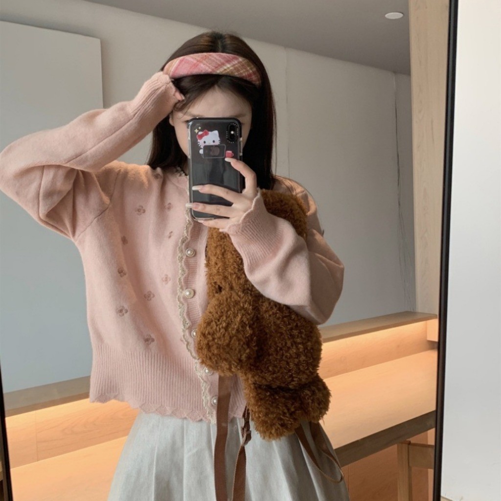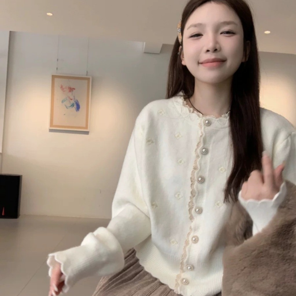 (พร้อมส่งด่วนจากกรุงเทพ??)เสื้อคาร์ดิแกนถักสตรีสไตล์เกาหลีใหม่เสื้อแจ็คเก็ตคอกลมแขนยาวลูกไม้หลวม Z283