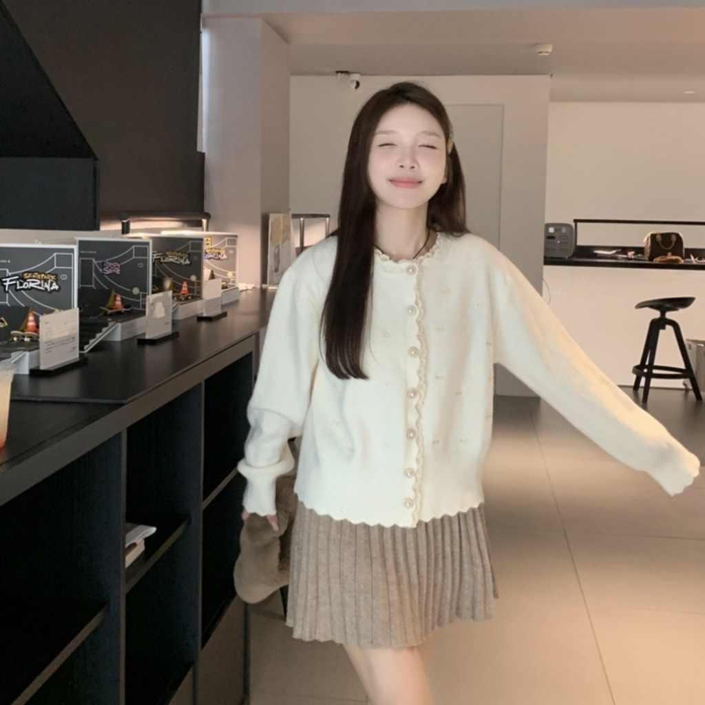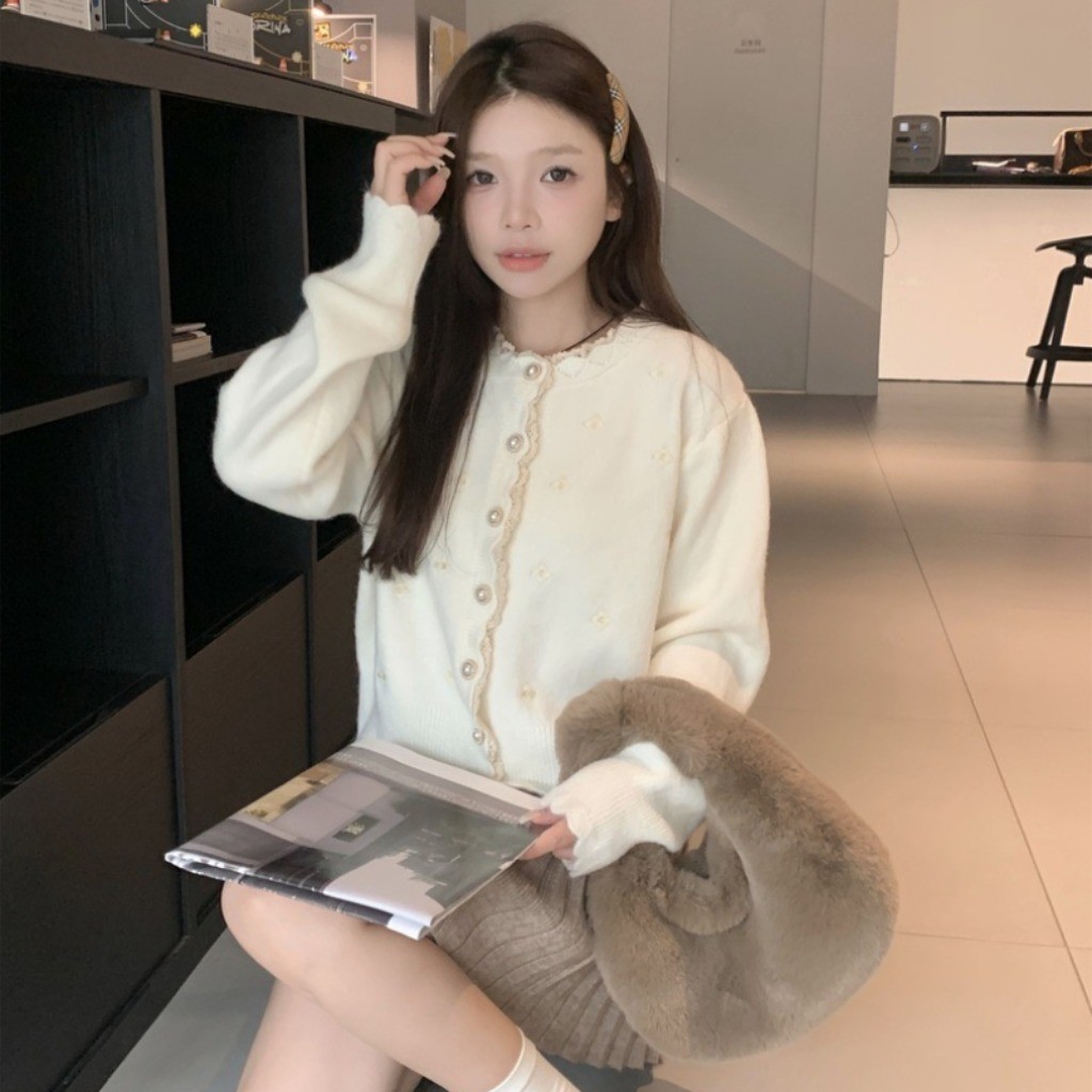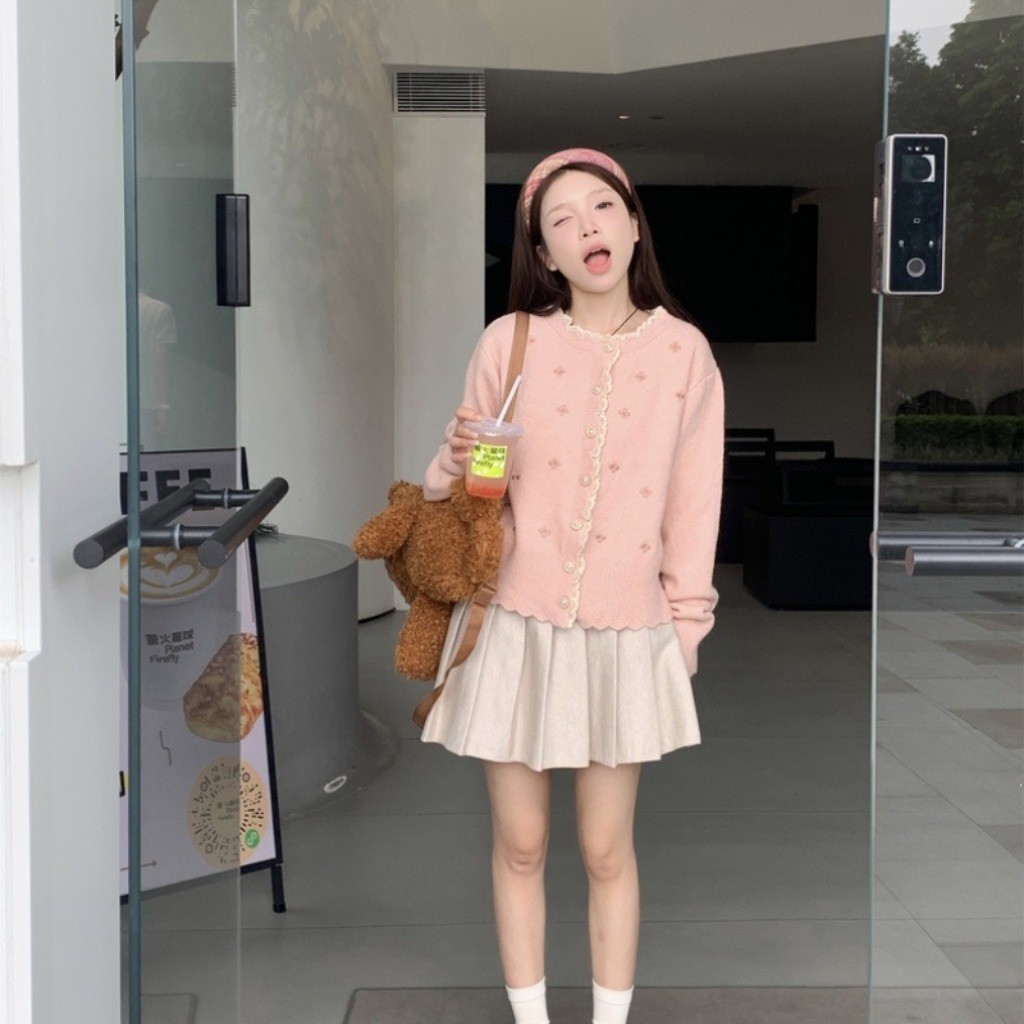 (พร้อมส่งด่วนจากกรุงเทพ??)เสื้อคาร์ดิแกนถักสตรีสไตล์เกาหลีใหม่เสื้อแจ็คเก็ตคอกลมแขนยาวลูกไม้หลวม Z283