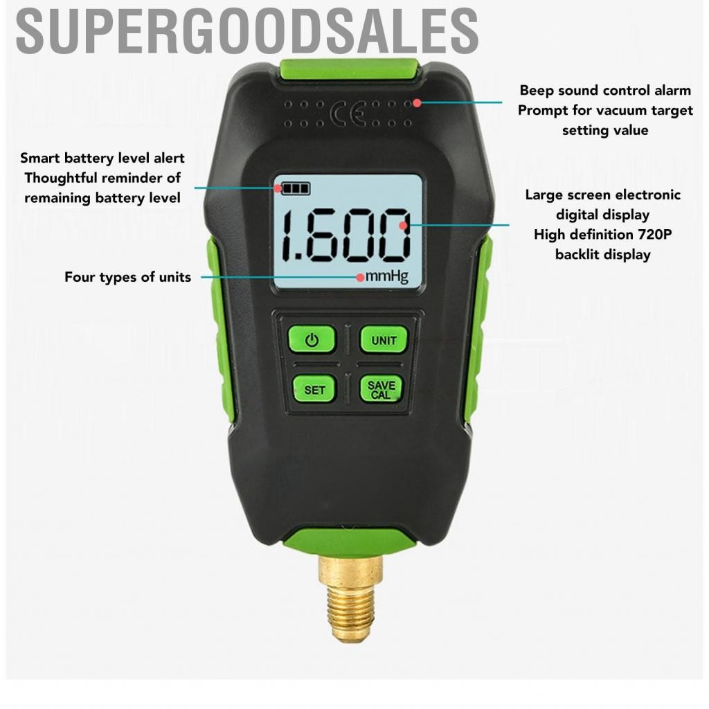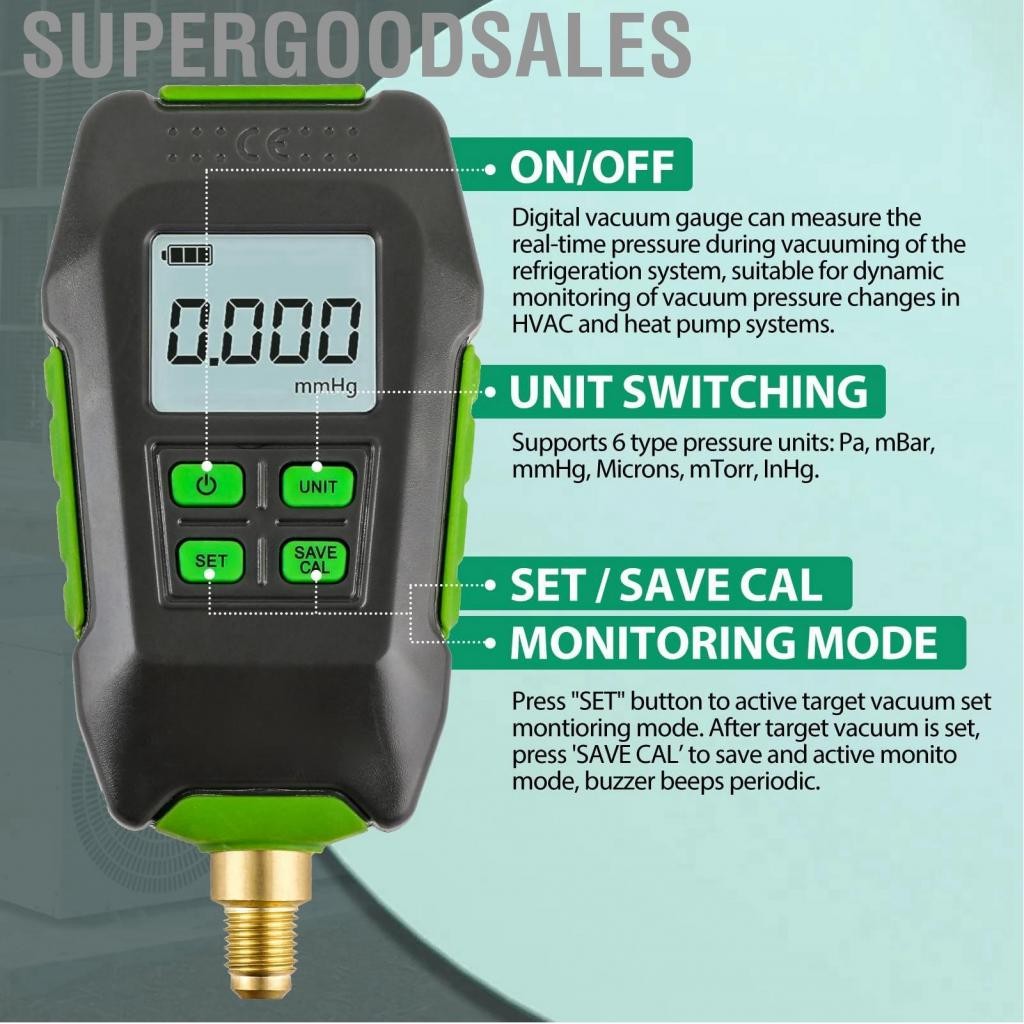 Supergoodsales เกจวัดสูญญากาศดิจิตอลทั่วไปพร้อมการแสดงผลแบ็คไลท์ความแม่นยำระดับมืออาชีพ IP54 HVAC Micron Tester 7/16 นิ้วอินเตอร์เฟส 20UNF สำหรับการทดสอบไซต์ TENINIC8YMIADK2RX