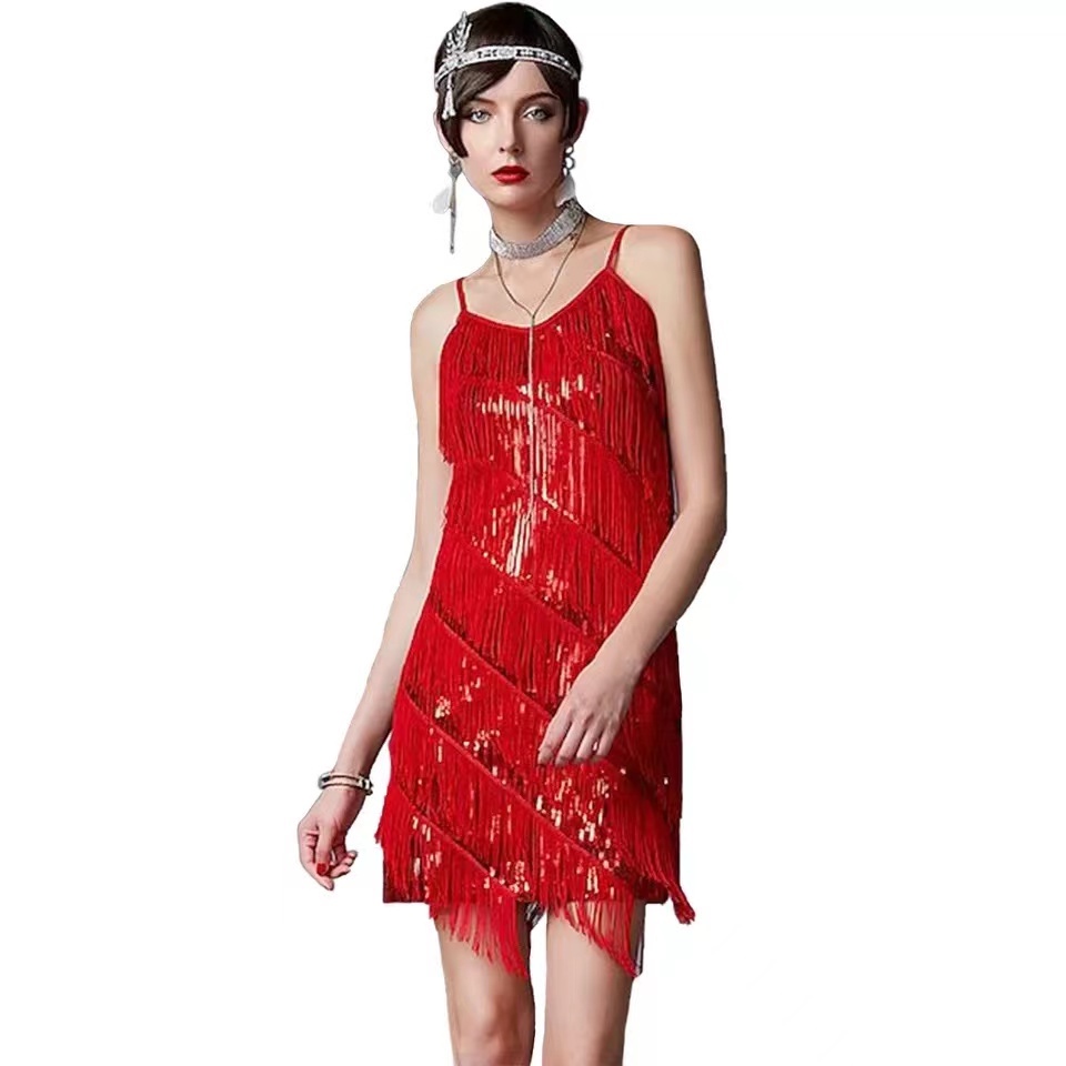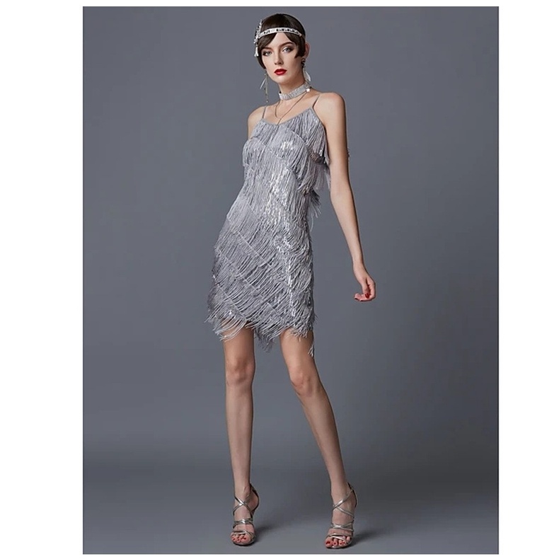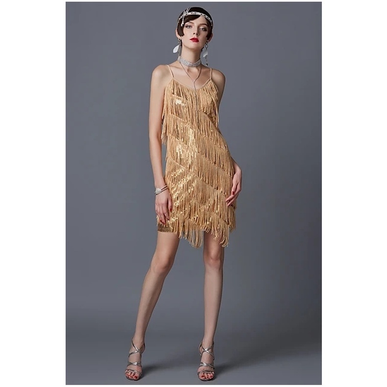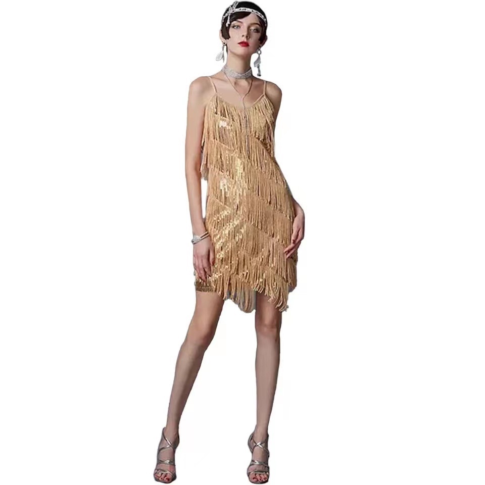 SIDAIMI 1920s Vintage Great Gatsby Party เลื่อมชุดเซ็กซี่ V คอฤดูร้อน Cami ชุด Gold Fringe ชุด Vestidos Flapper เครื่องแต่งกาย S-3XL