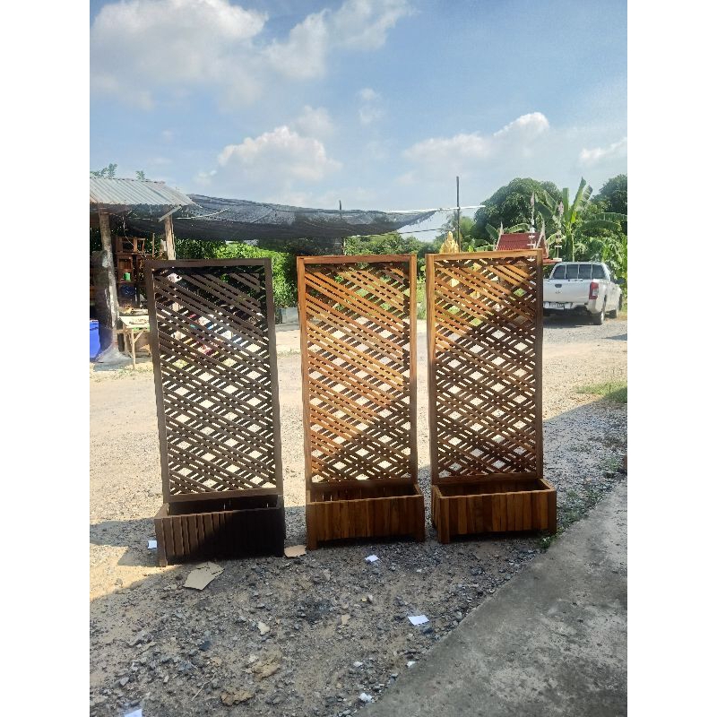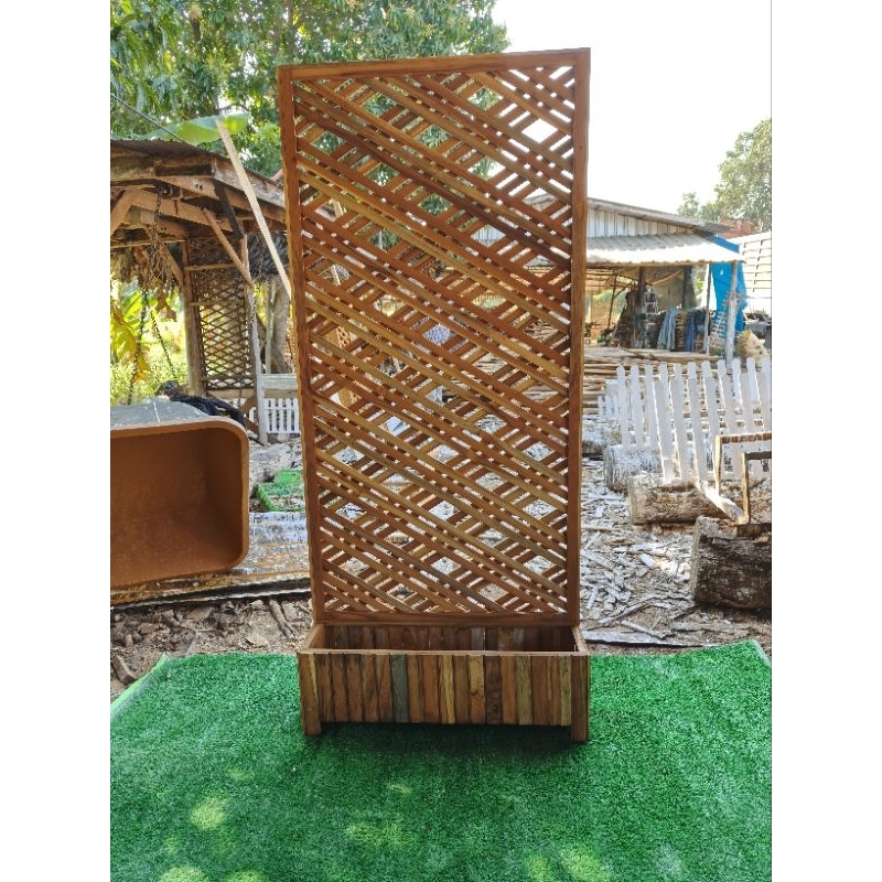 ระแนงไม้ พร้อมกระถาง งานทำจากไม้สักแท้ สามารถใช้งานได้ทั้งภายนอกและภายใน