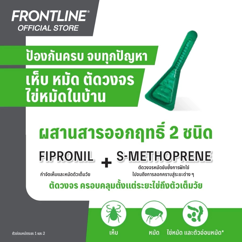 Frontguard Plus ยาหยดกำจัดหมัด ไข่หมัด ตัวอ่อน ฟร้อนท์การ์ด พลัส สุนัข แมว