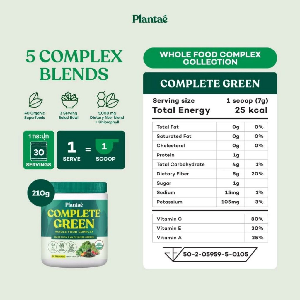 Plantae Whole Food Complex : Complete Green ขนาด 210 กรัม ผงผักและผลไม้