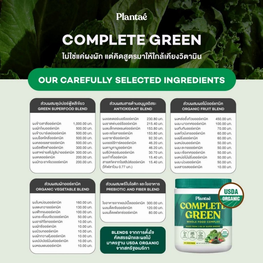 เบลนด์ด้วยความใส่ใจของ Plantaeไม่ใช่แค่ผงผัก แต่คิดมาให้สูตรใกล้เคียงวิตามิน มาตรฐาน USDA organic จากธรรมชาติ