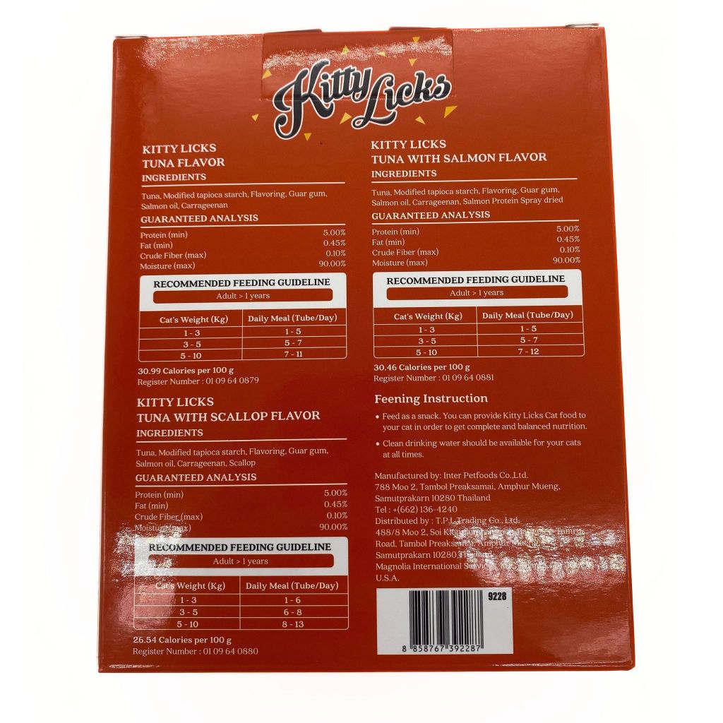 9228 KITTY LICKS 30 TUBES/รสทูน่า, ทูน่า&แซลม่อน, ทูน่า&หอยเชลล์ 30 หลอด ***โปรพิเศษ1แถม1 299บาท***