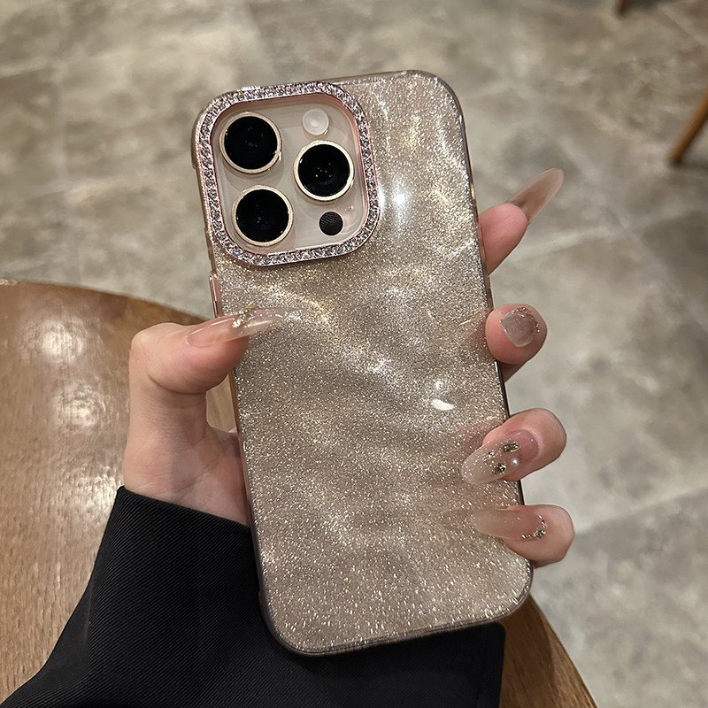 หรูหราBling Glitterเพชรใสเลนส์เคสโทรศัพท์สําหรับIphone 11 15 16 17 Promax 12 13 14 Pro Maxโปร่งใสนุ่มTPUโทรศัพท์ปกหลัง