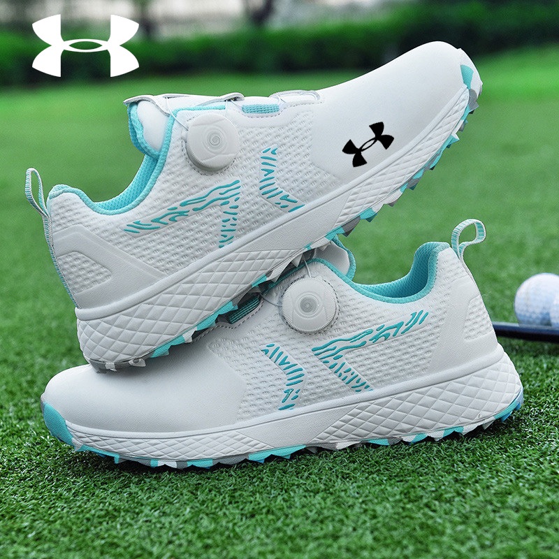 รองเท้ากอล์ฟผู้ชายผู้หญิงคู่สบายกันน้ําอัตโนมัติลูกบิดหดเชือกผูกรองเท้ากันลื่นคงที่แหลมรองเท้าผ้าใบกลางแจ้ง
