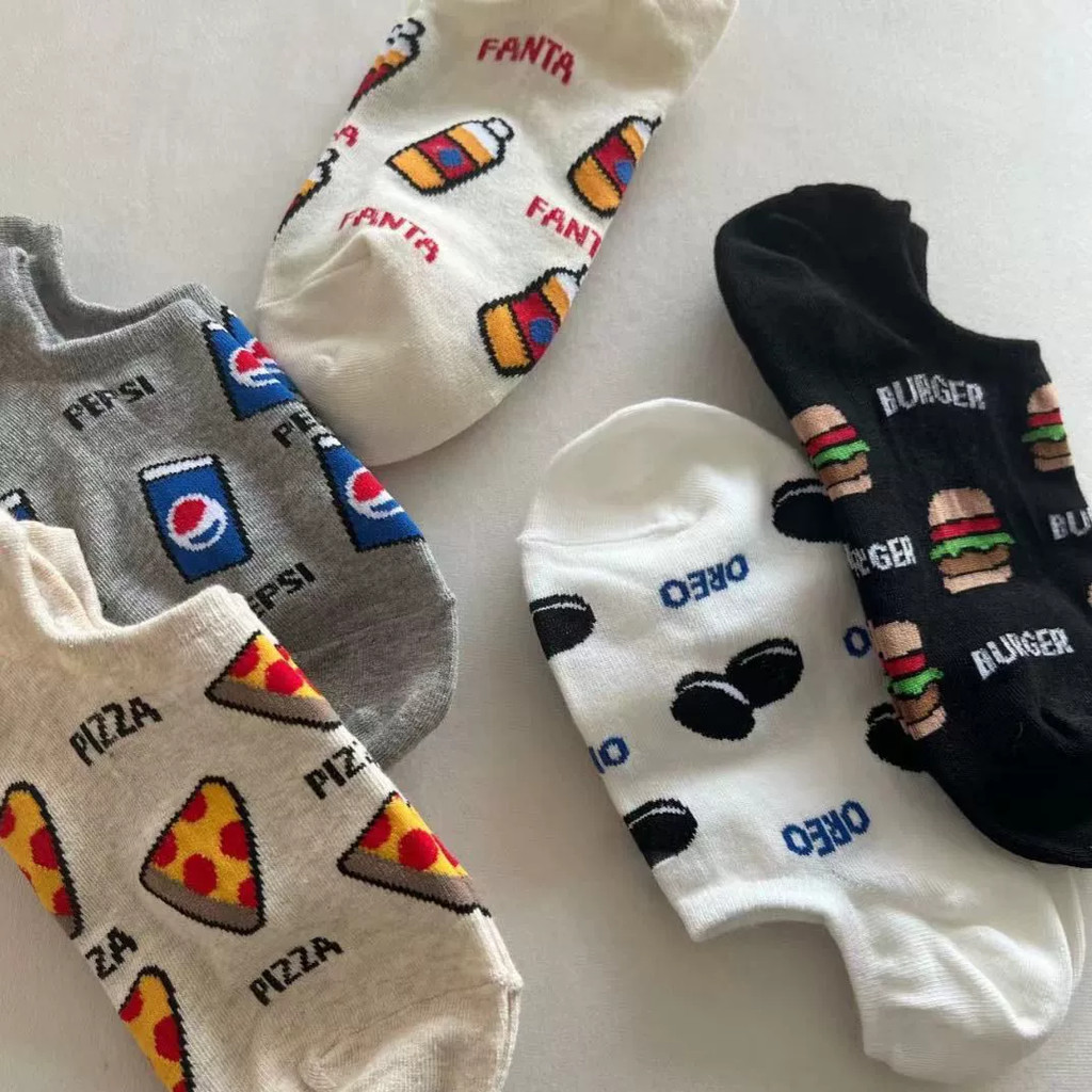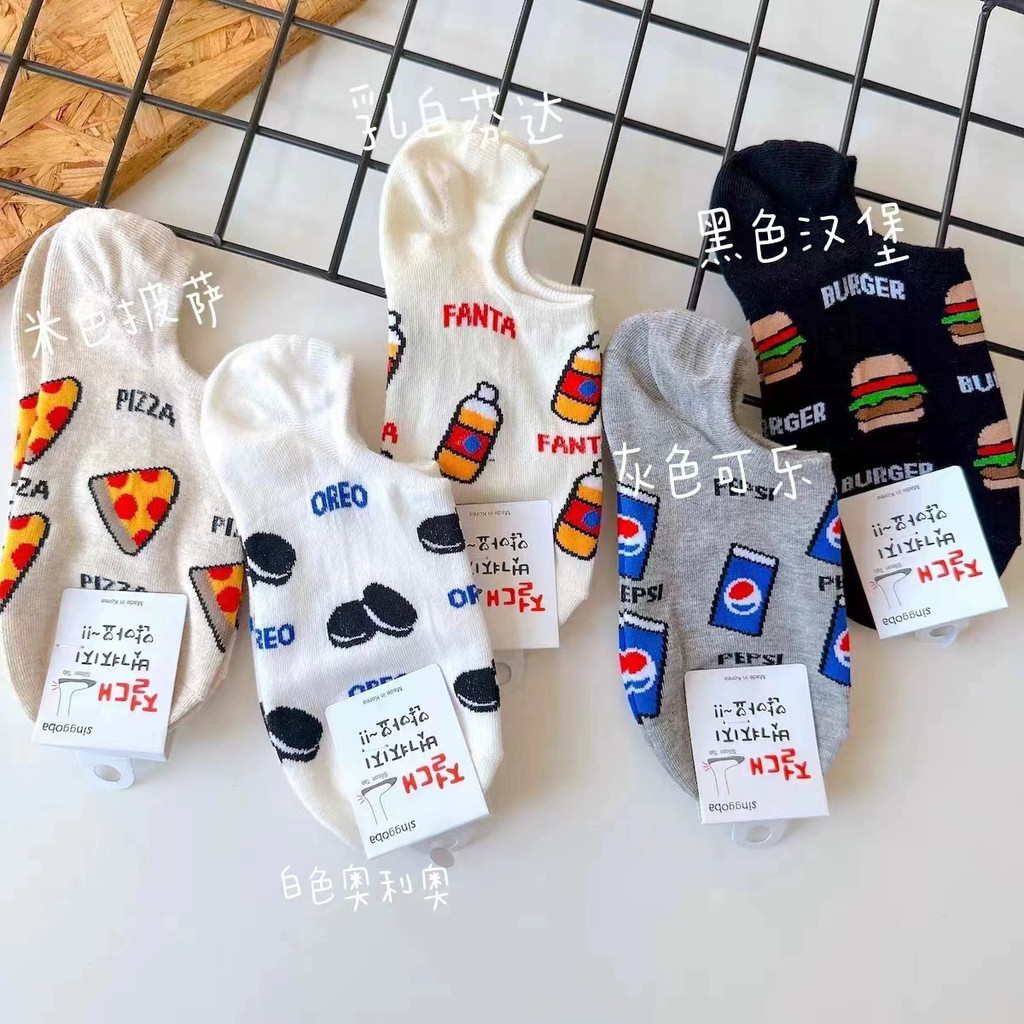 ฤดูร้อนใหม่ถุงเท้าพิซซ่าหญิงญี่ปุ่นเบอร์เกอร์น่ารักที่มองไม่เห็นเรือถุงเท้าการ์ตูนเกาหลีถุงเท้าปากตื้น
