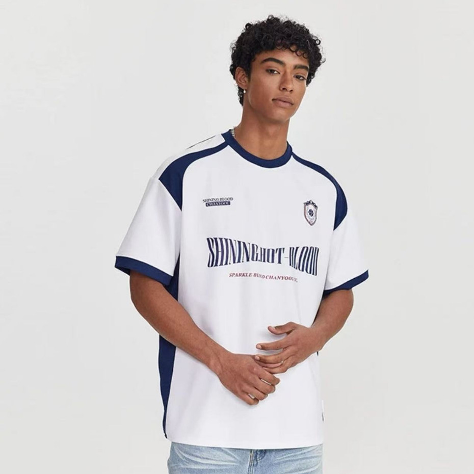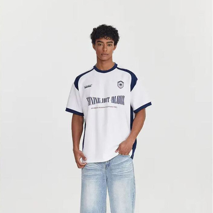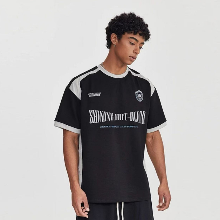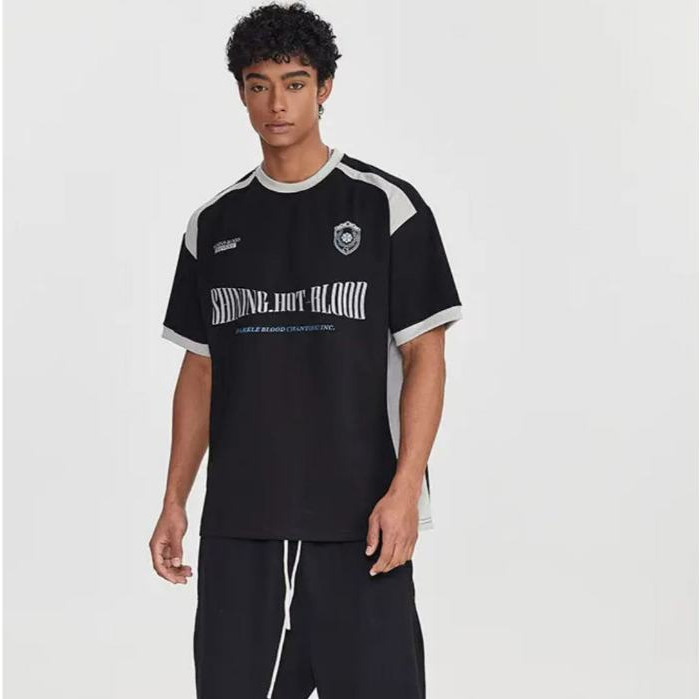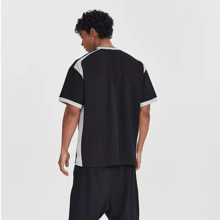 ⚡️ProMan⚡️ฤดูร้อนสีตัดกันกระเป๋าแขนสั้น เสื้อคอกลม เรียบง่าย แบบหลวม