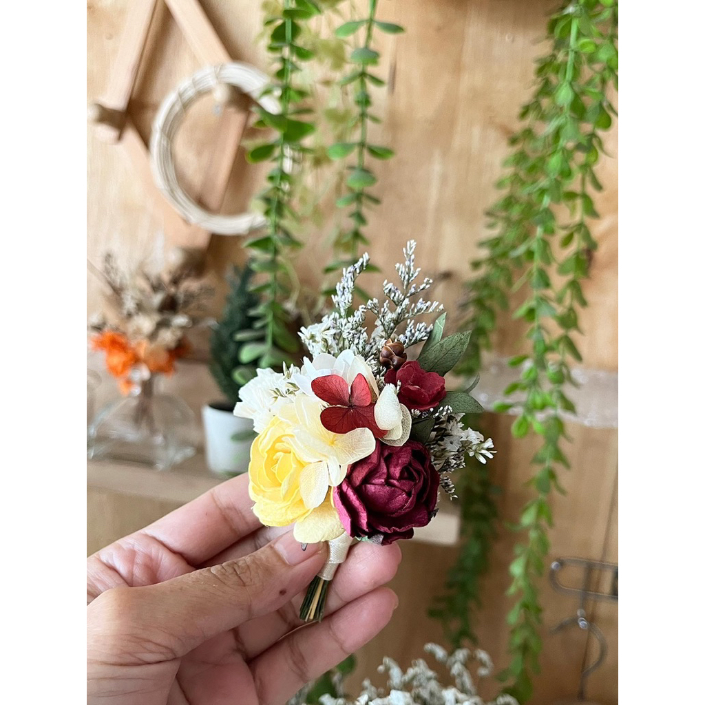 เข็มกลัดดอกไม้ติดหน้าอก โทนสีเหลืองแดง