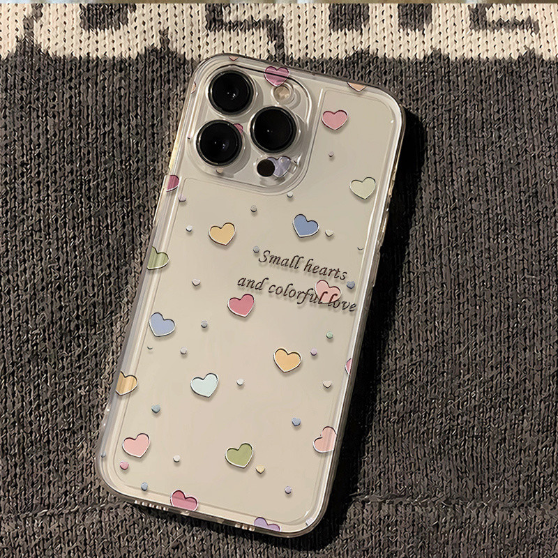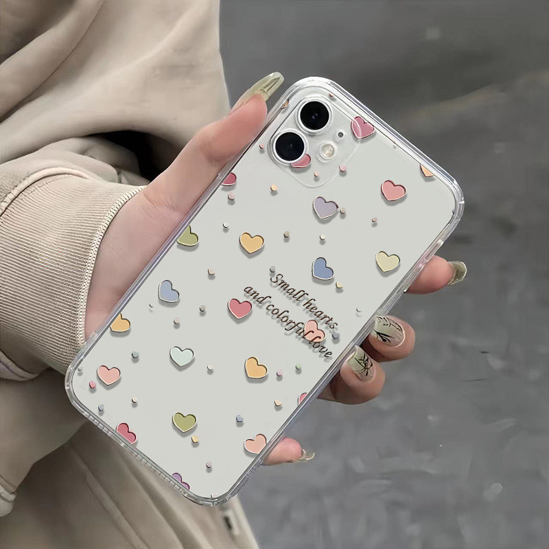 ญี่ปุ่นเกาหลีภาษาอังกฤษ Mini Love Soft Case เหมาะสําหรับ iPhone 16 XR 16PROMAX 7/8PLUS โทรศัพท์มือถือป้องกันกรณีทนทาน XS MAX 15PRO โปร่งใส 15PROMAX 14/15/16 ป้องกัน