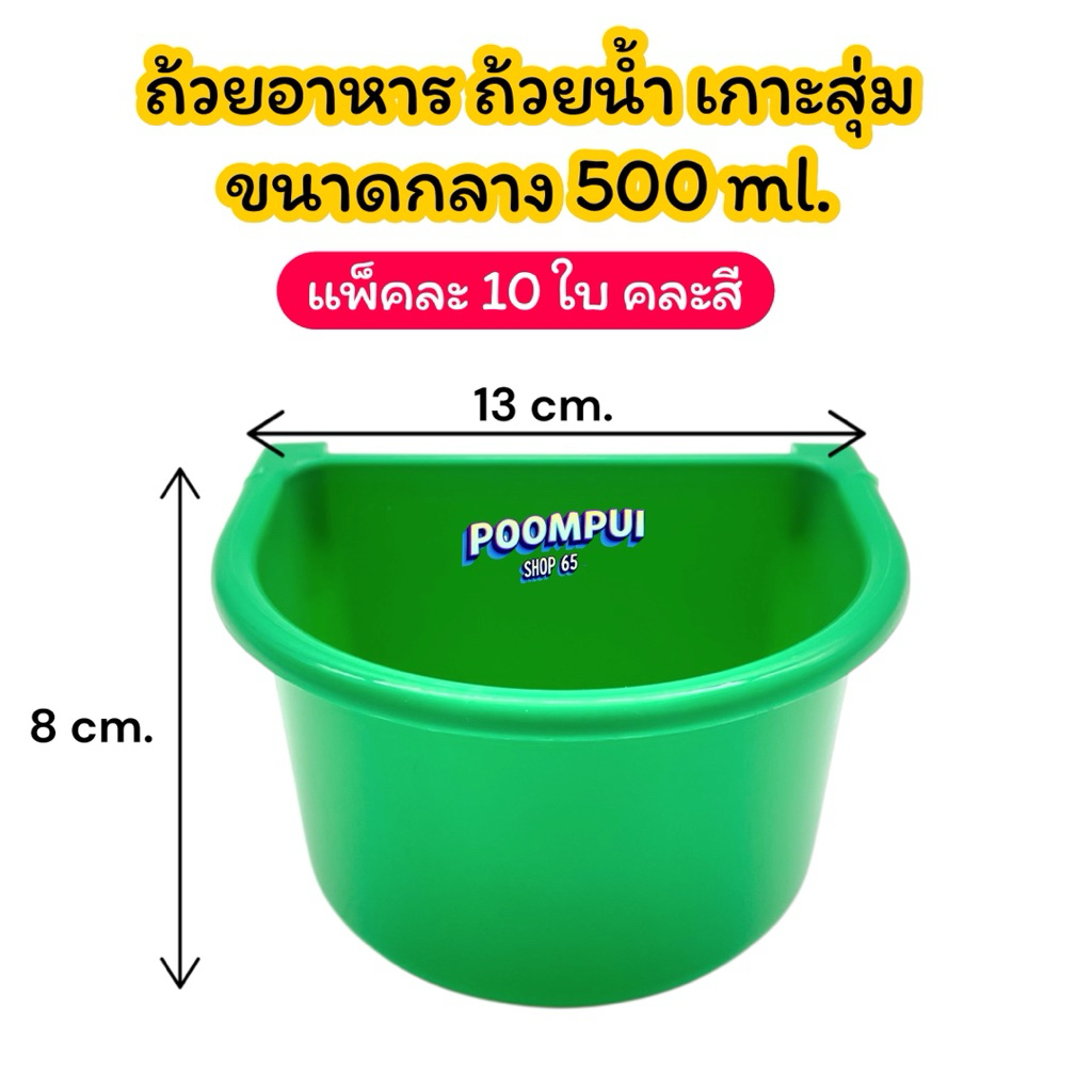 แพ็คละ 20 ใบ ถ้วยใส่อาหาร ใส่น้ำ เกาะสุ่ม เกาะกรง ขนาดกลาง 500 ml. คละสี