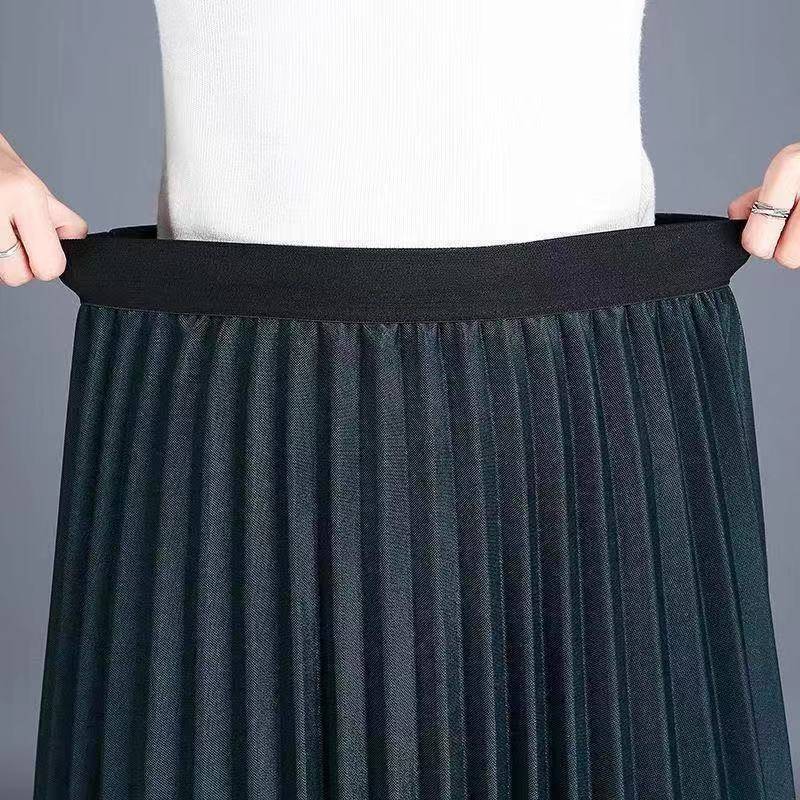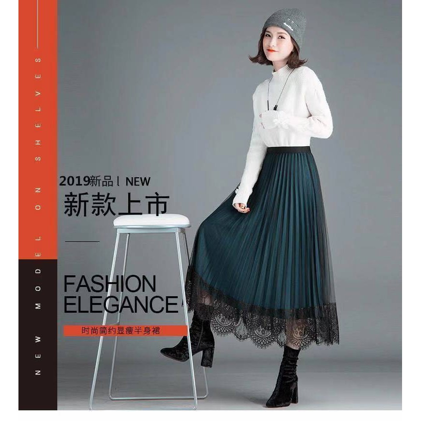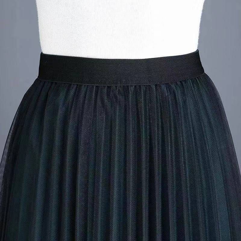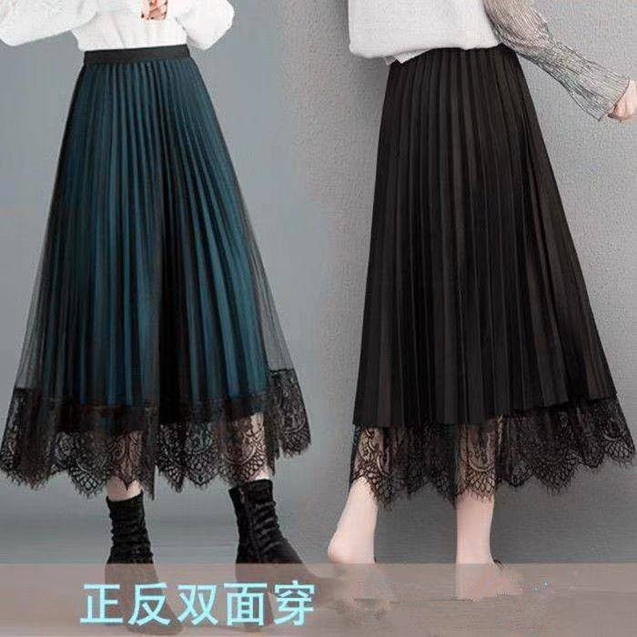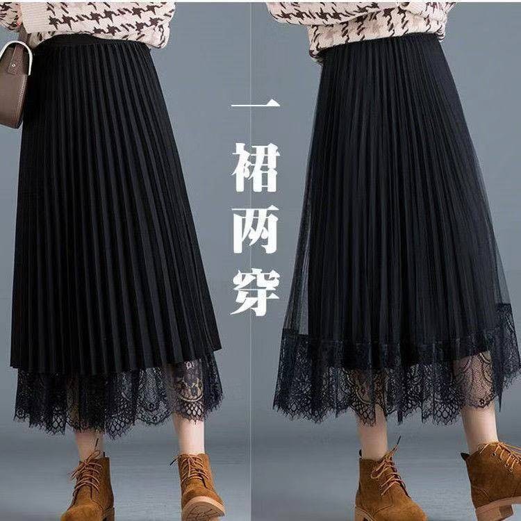 กระโปรงครึ่งตัวกระโปรงตาข่ายใหม่ [กระโปรงพลีทไซส์ใหญ่บางเอวสูงสองด้านใส่ในสต็อก] ลูกไม้ยาวปานกลางใหม่ผู้หญิง dnhj