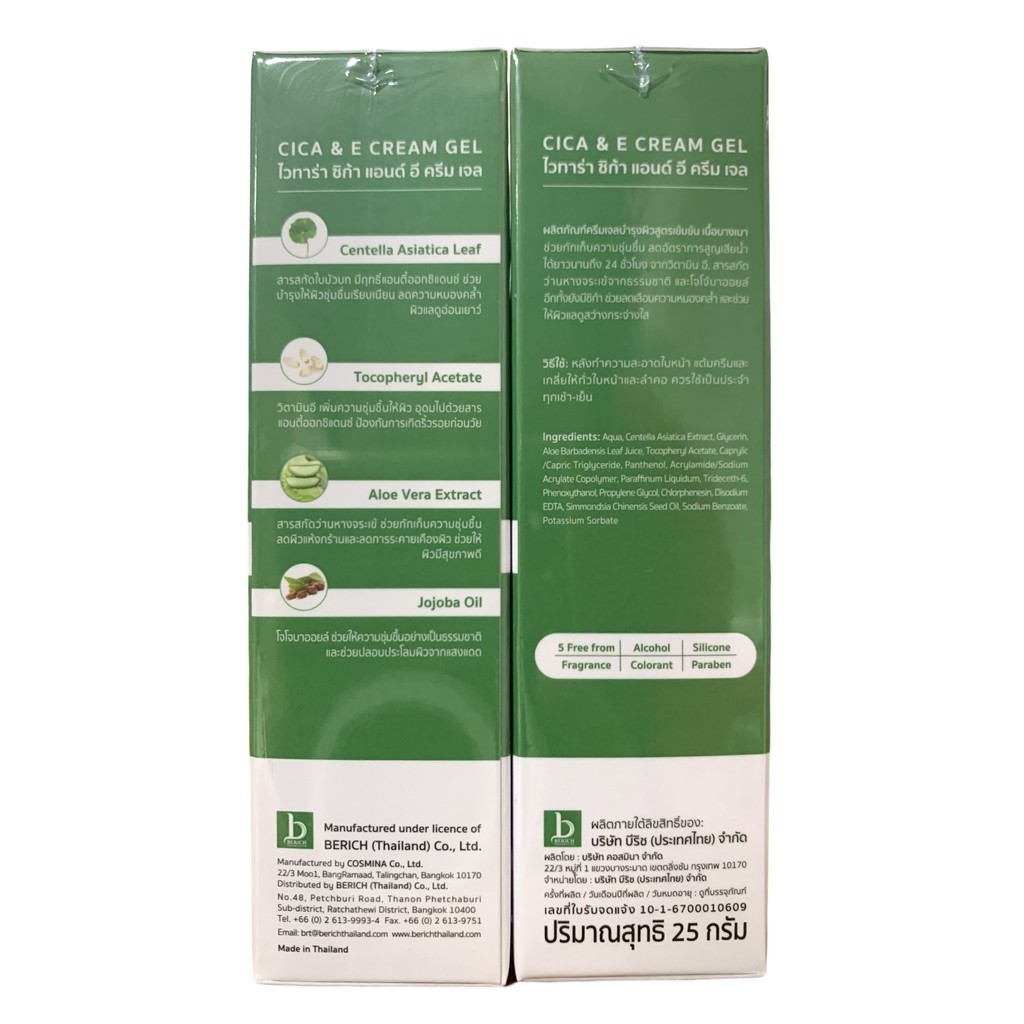 Vitara Cica & E Cream Gel Soothing Moisturizer ไวทาร่า ซิก้า แอนด์ อี ครีม เจล 25 g. จำนวน 1 หลอด