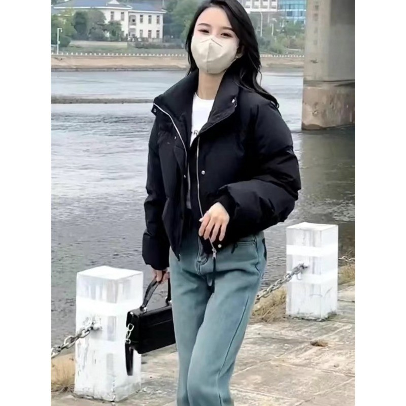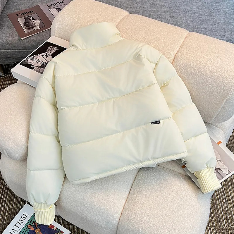 ฤดูใบไม้ร่วงฤดูหนาวอินเทรนด์น้ําหนักเบาลงแจ็คเก็ตผ้าฝ้ายผู้หญิงสบายๆหลวมเสื้อแจ็คเก็ตสั้นหนา