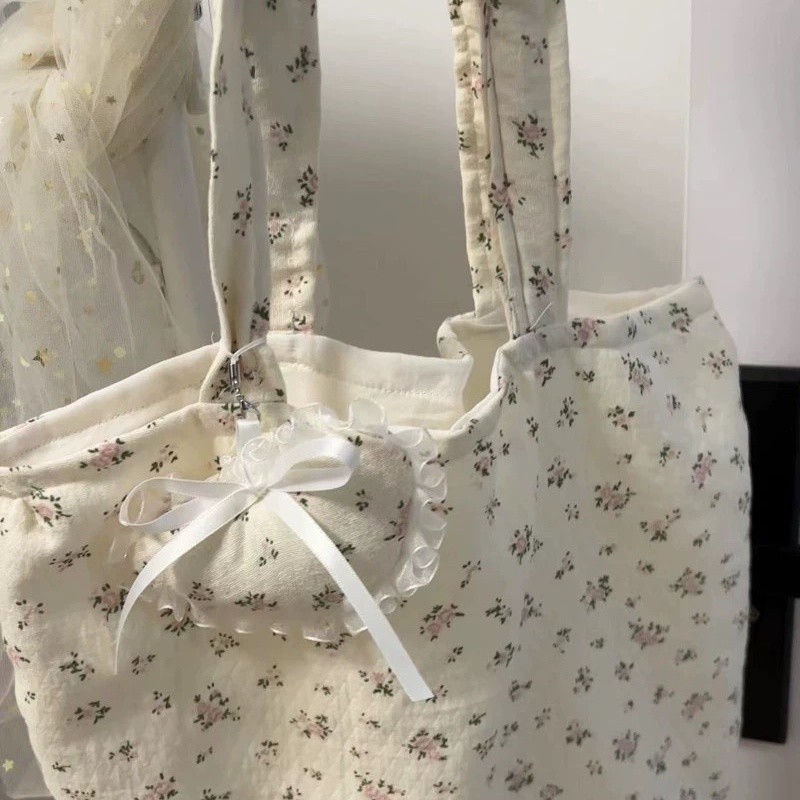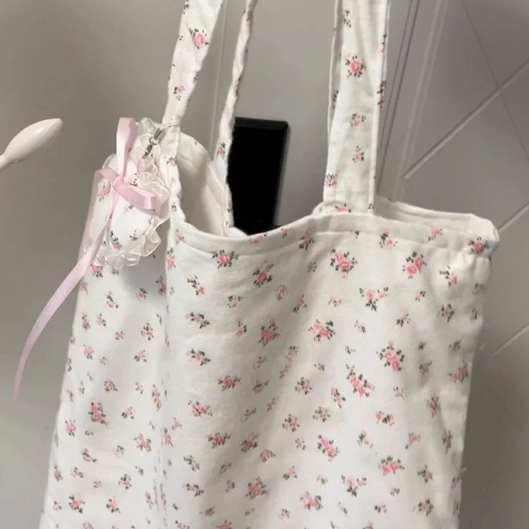 ? สินค้าใหม่ ? กระเป๋าลายดอกไม้สไตล์เกาหลี INS กระเป๋าผ้าแคนวาสสระเป๋าสะพายไหล่สะพายข้าง2024แบบใหม่ความจุใหญ่