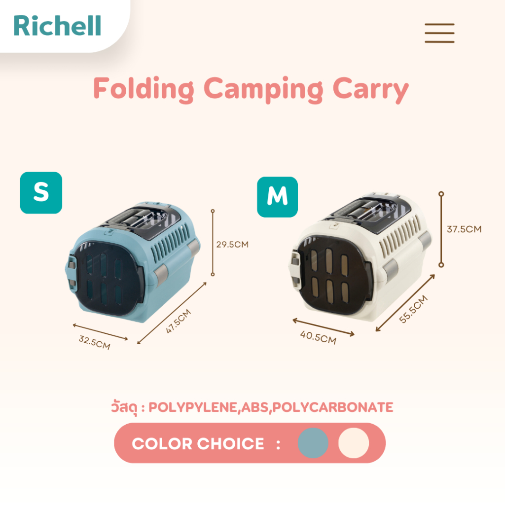 Richell Pet(ริเชลล์) กรงหิ้วแมว หมา กรงสัตว์เลี้ยง พกพา เปิดได้ 2 ประตู กรงสัตว์เลี้ยง Carrier Double Door
