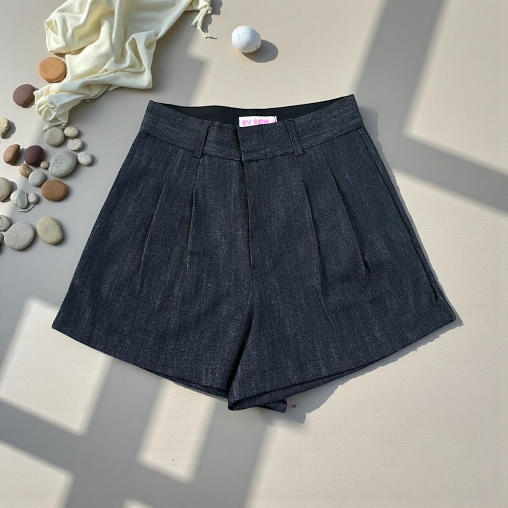 กางเกงขาสั้นขาเว้า เอวสูงผ้ายีนส์ลายริ้วเนื้อผ้ายีนส์ ผ้าไม่ยืด ผ้าสวยอยู่ตัว ดีเทลตะขอหน้า เอวสูงเพิ่มความน่ารักขาเว้าด้านข้าง รุ่นนี้ตอบโจทย์คนชอบกางเกงสั้น ใส่แล้วขาดูเรียวยา