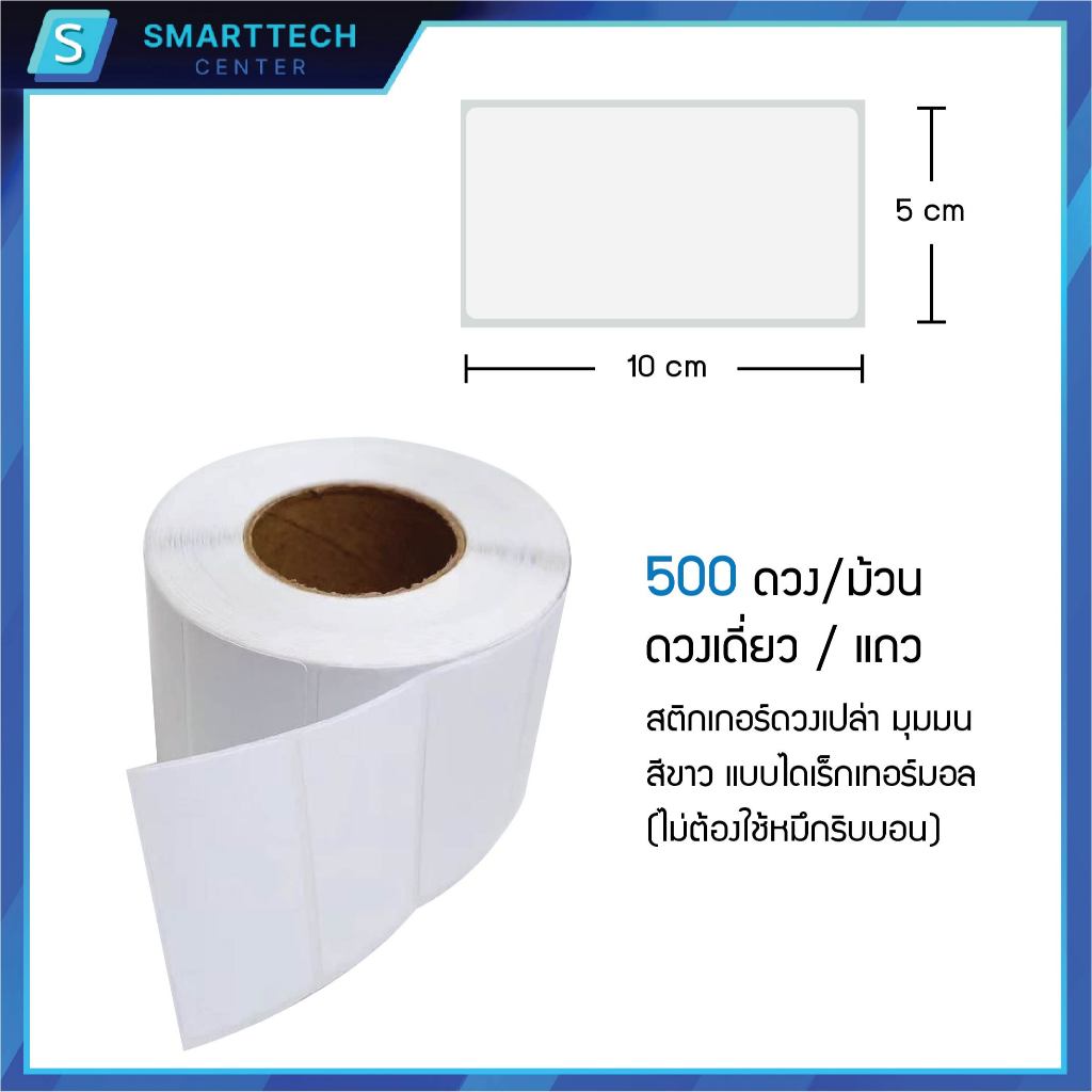 Sticker Direct Thermal 10×5 cm สติกเกอร์ความร้อน ไดเร็กเทอร์มอล สติกเกอร์บาร์โค้ด จำนวน 500 ดวง/ม้วน (ไม่ต้องใช้หมึก)
