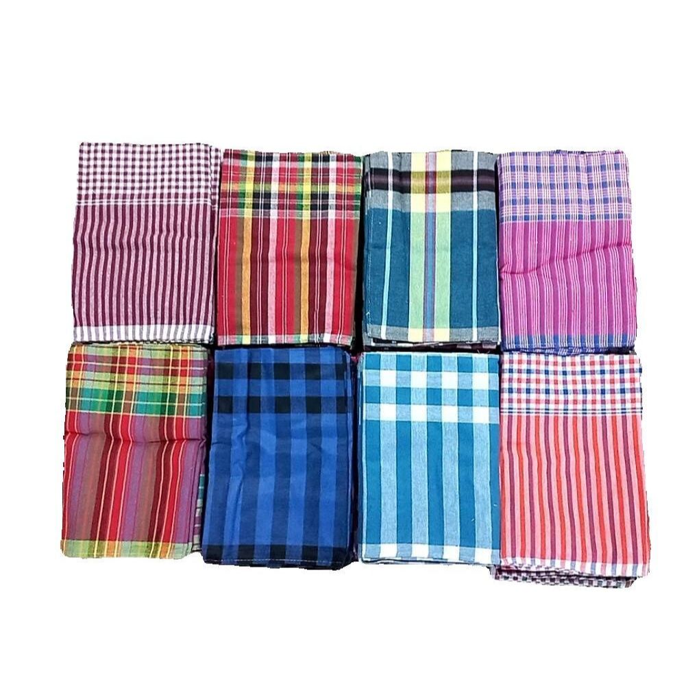 ผ้าขาวม้า ตรารถไฟ เย็บริม ขนาด 80x190cm คละลาย ขายส่ง 80 ผืน