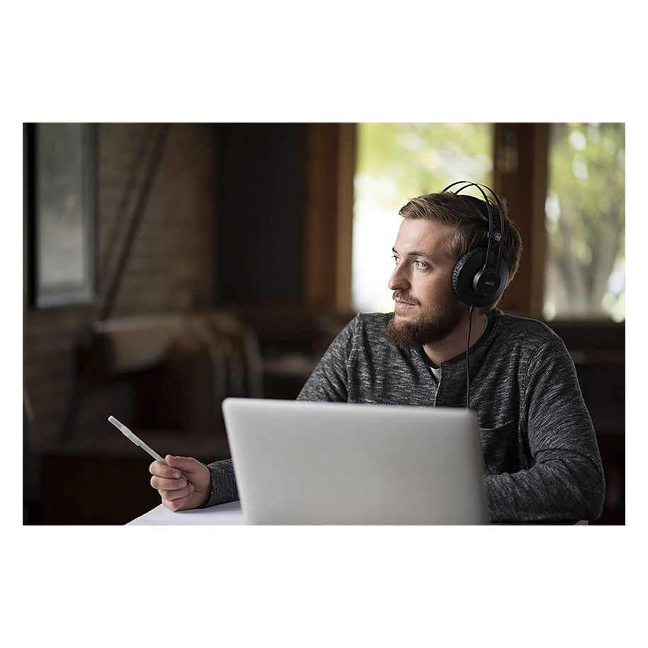 หูฟัง AKG K52 พร้อมสายยาว 2.5 เมตร ตัวหูฟังเป็นพลาสติกแข็ง Earpad ครอบหู และ Headband ทำจากหนังคุณภาพดีเยี่ยม เหมาะกับผู้ที่ชอบนั่งทำเพลงนานๆ