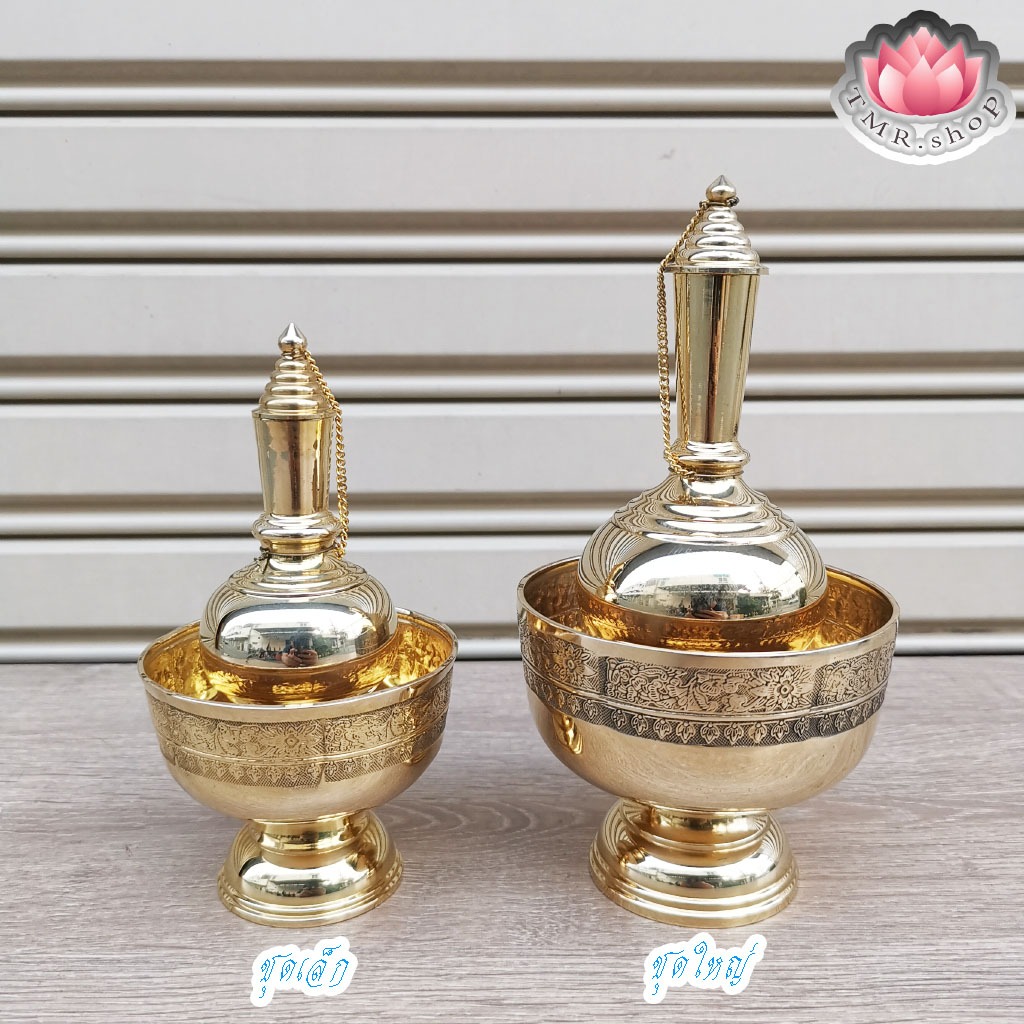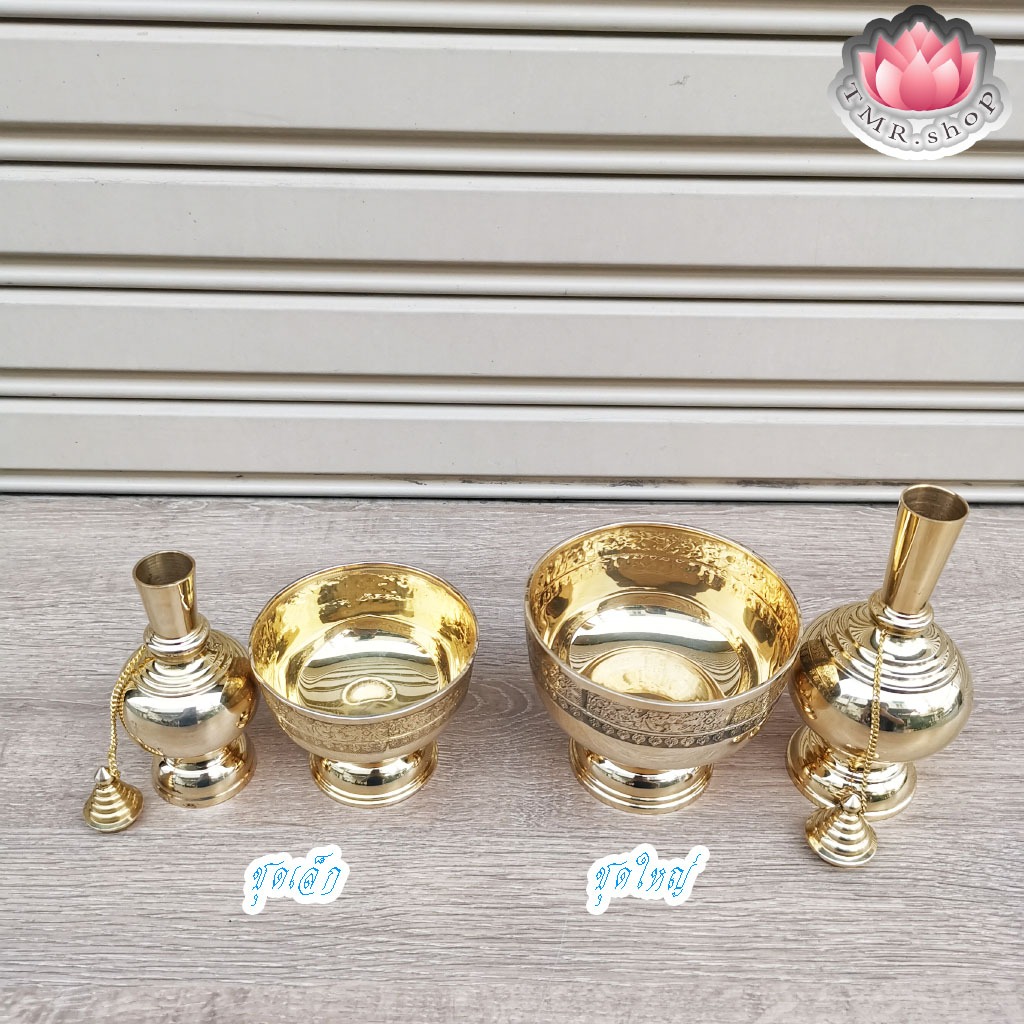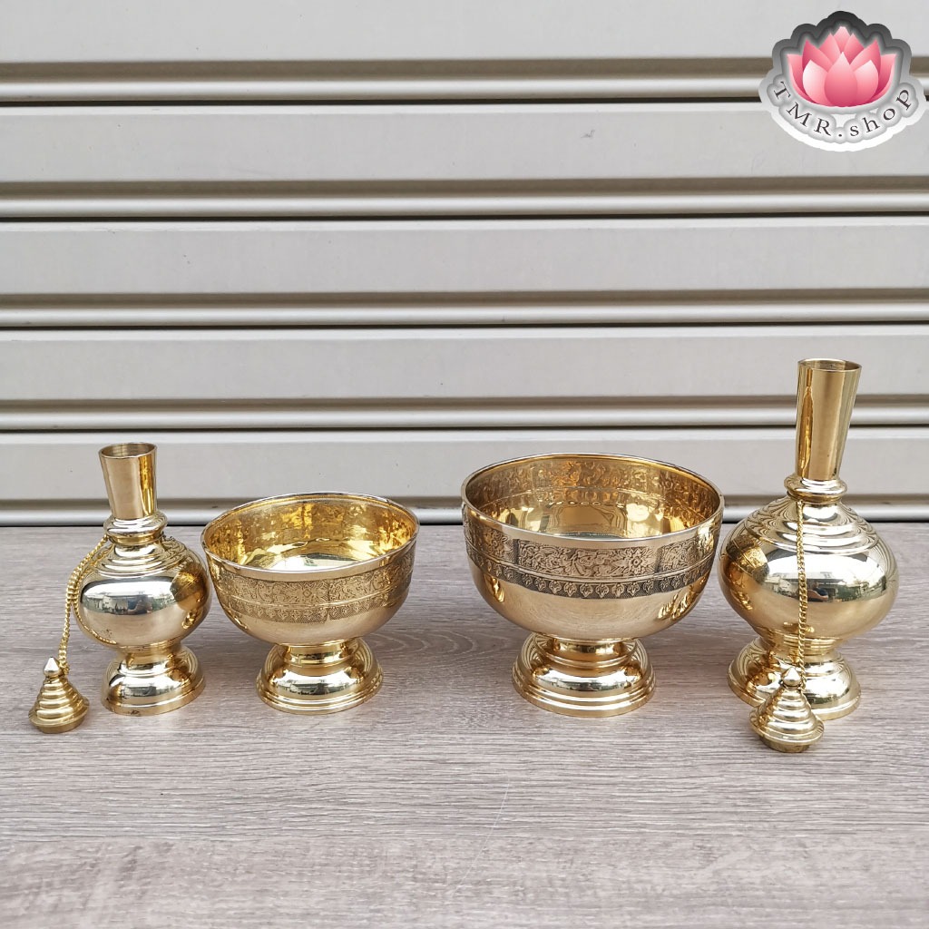 ที่กรวดน้ำทองเหลือง ตอกลาย ชุดเล็ก/ชุดใหญ่