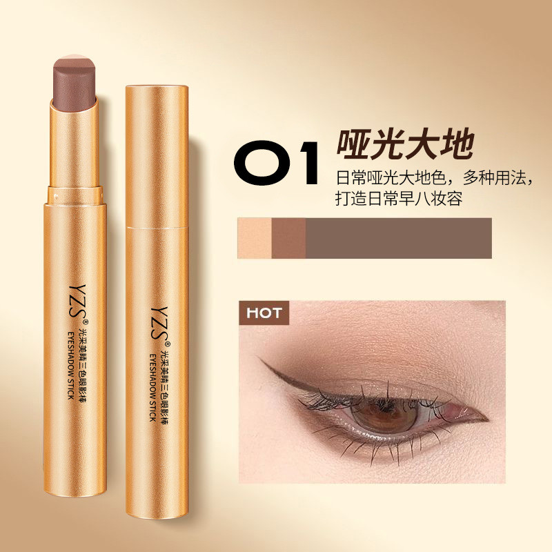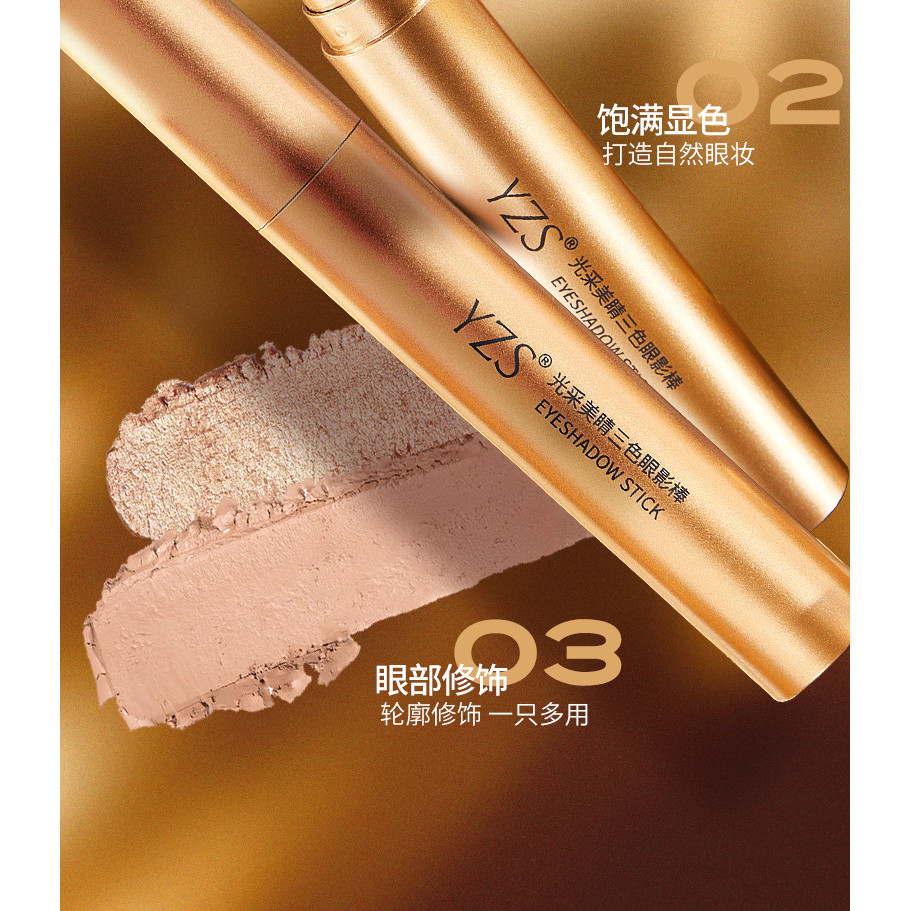 YZS อายแชโดว์แบบแท่งสามสี อายแชโดว์กลิตเตอร์เนื้อละเอียด เกลี่ยง่าย มือใหม่แต่งหน้าง่าย กลอสซี่สุดๆ ด้วยอายแชโดว์แบบแท่งที่ขึ้นรูปได้เพียงสัมผัสเดียว