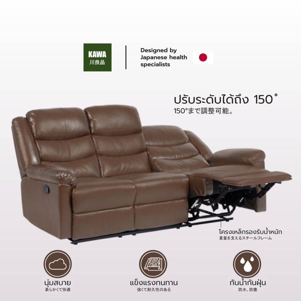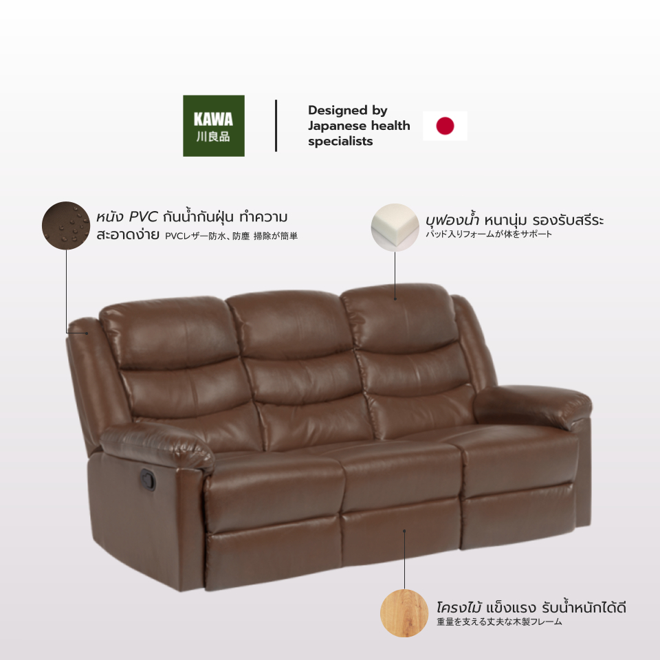 Kawa รุ่น Hani โซฟา Recliner PVC ปรับเอน 3 ที่นั่ง นุ่มสบาย แข็งแรง กันน้ำและกันฝุ่น