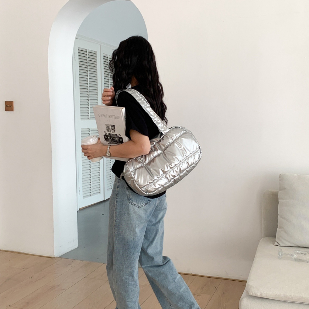 กระเป๋าสะพายไหล่ EAZY Bun Bag กระเป๋าฟิตเนส แฟชั่น ลำลอง เสริมเดินทาง แบบนุ่มนิ่ม มันเงา สไตล์เกาหลี รุ่นปี2025