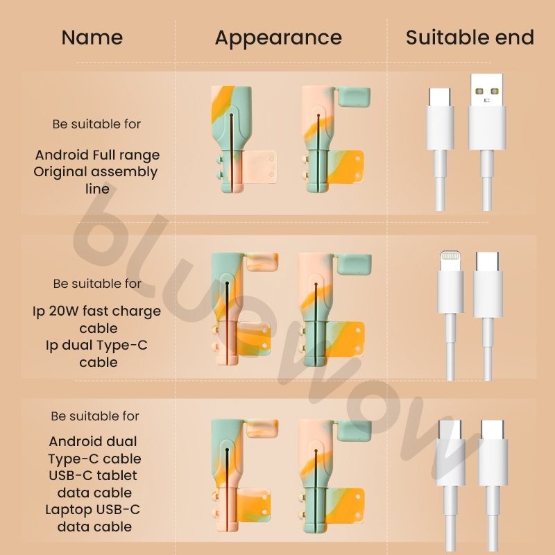 ขายร้อน Bluewow Charger Protector ซิลิโคนสายป้องกัน IP-18/20w ประเภท C/USB ฝาครอบสายไฟ